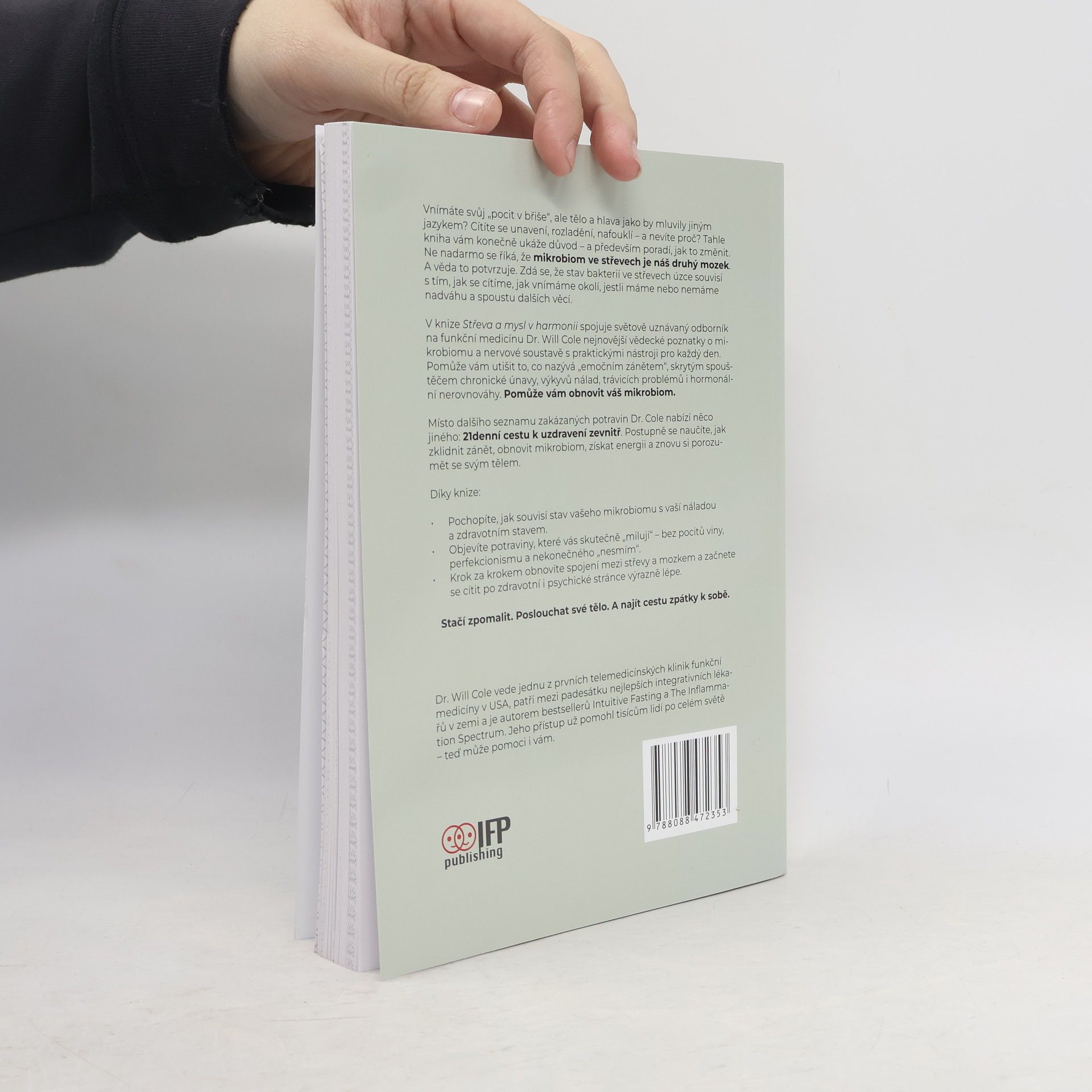 Ne nadarmo se říká, že mikrobiom ve střevech je náš druhý mozek. A věda to potvrzuje. Zdá se, že stav bakterií ve střevech úzce souvisí s tím, jak se cítíme, jak vnímáme okolí, jestli máme nebo nemáme nadváhu a spoustu dalších věcí. V knize Střeva a mysl v harmonii spojuje světově uznávaný odborník na funkční medicínu Dr. Will Cole nejnovější vědecké poznatky o mikrobiomu a nervové soustavě s praktickými nástroji pro každý den. Pomůže vám utišit to, co nazývá „emočním zánětem“, skrytým spouštěčem chronické únavy, výkyvů nálad, trávicích problémů i hormonální nerovnováhy. Pomůže vám obnovit váš mikrobiom. Místo dalšího seznamu zakázaných potravin Dr. Cole nabízí něco jiného: 21denní cestu k uzdravení zevnitř. Postupně se naučíte, jak zklidnit zánět, obnovit mikrobiom, získat energii a znovu si porozumět se svým tělem.