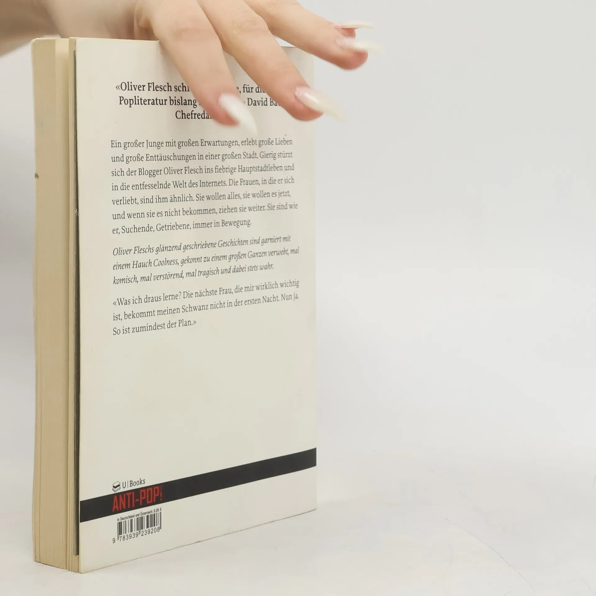 Ein großer Junge mit großen Erwartungen, erlebt große Lieben und große Enttäuschungen in einer großen Stadt. Gierig stürzt sich der Blogger Oliver Flesch ins fiebrige Hauptstadtleben und in die entfesselnde Welt des Internets. Die Frauen, in die er sich verliebt, sind ihm ähnlich. Sie wollen alles, sie wollen es jetzt, und wenn sie es nicht bekommen, ziehen sie weiter. Sie sind wie er, Suchende, Getriebene, immer in Bewegung, beinahe rastlos. Womit Baby, das war’s! unsere hektische Zeit widerspiegelt. Oliver Fleschs glänzend geschriebene Geschichten sind garniert mit einem Hauch Coolness, gekonnt zu einem großen Ganzen verwebt, mal komisch, mal verstörend, mal tragisch und dabei stets wahr. 'Was ich draus lerne? Die nächste Frau, die mir wirklich wichtig ist, bekommt meinen Schwanz nicht in der ersten Nacht. Nun ja. So ist zumindest der Plan.'