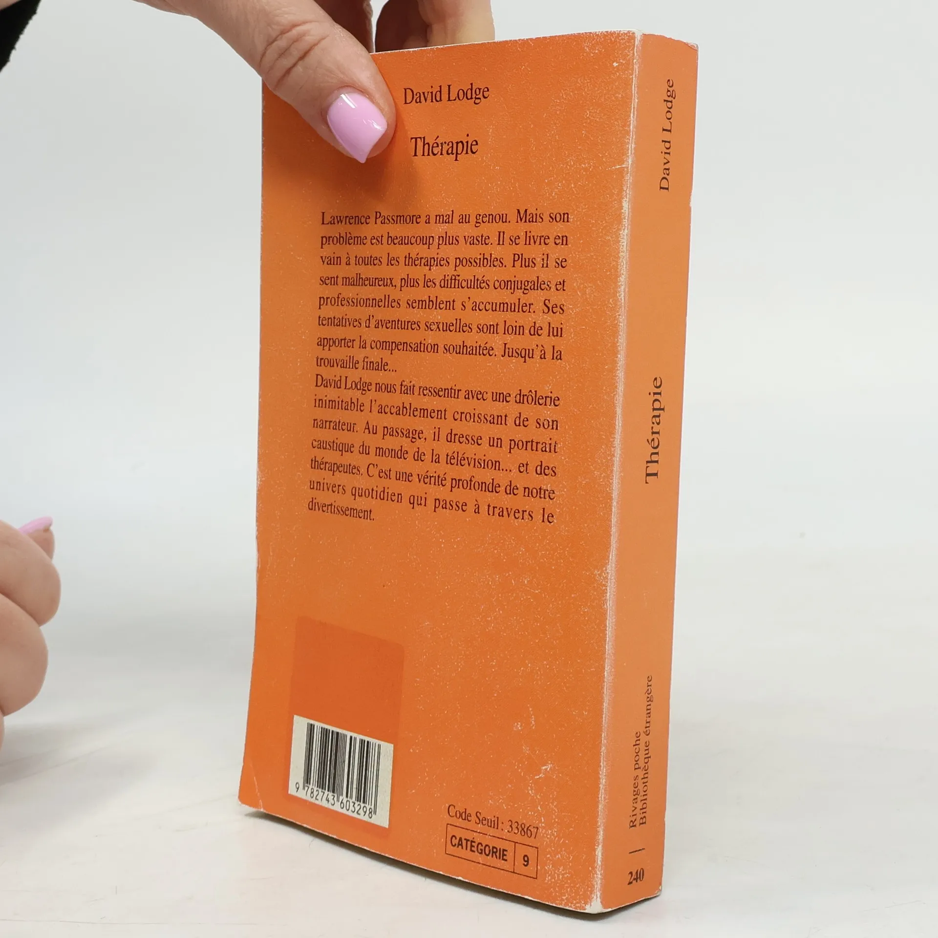Lawrence Passmore a mal au genou. Mais son problème est beaucoup plus vaste. Il se livre en vain à toutes les thérapies possibles. Plus il se sent malheureux, plus les difficultés conjugales et professionnelles semblent s'accumuler. Ses tentatives d'aventures sexuelles sont loin de lui apporter la compensation souhaitée. Jusqu'à la trouvaille finale... David Lodge nous fait ressentir avec une drôlerie inimitable l'accablement croissant de son narrateur. Au passage, il dresse un portrait caustique du monde de la télévision... et des thérapeutes. C'est une vérité profonde de notre univers quotidien qui passe à travers le divertissement.
