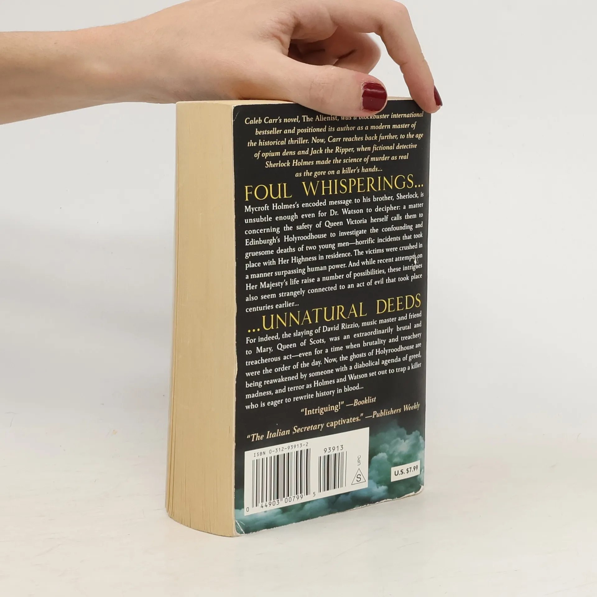 Foul Whisperings...Mycroft Holmes's encoded message to his brother, Sherlock, is unsubtle enough even for Dr. Watson to decipher: a matter concerning the safety of Queen Victoria herself calls them to Edinburgh's Holyrood House to investigate the confounding and gruesome deaths of two young men--horrific incidents that took place with her highness in residence. The victims were crushed in a manner surpassing human power. And while recent attempts on her majesty's life raise a number of possibilities, these intrigues also seem strangely connected to an act of evil that took place centuries earlier…...Unnatural DeedsFor indeed, the slaying of David Rizzio, music master and friend to Mary Queen of Scots, was an extraordinarily brutal and treacherous act--even for a time when brutality and treachery were the order of the day. Now, the ghosts of Holyrood House are being reawakened by someone with a diabolical agenda of greed, madness, and terror as Holmes and Watson set out to trap a killer who is eager to rewrite history in blood...(back cover)