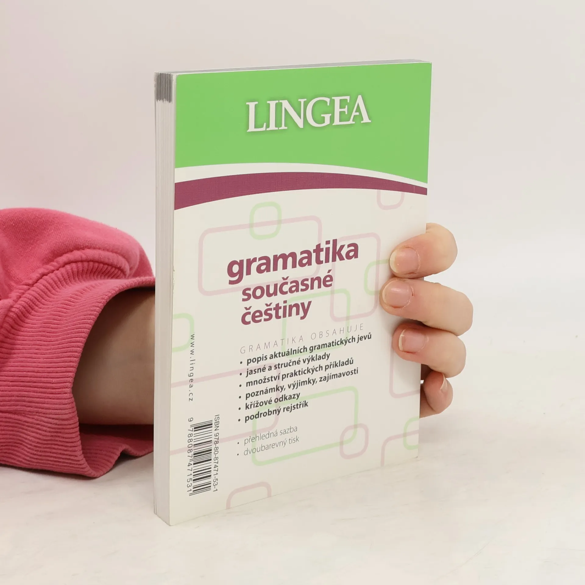 Nová autorská gramatika přináší přehled všech běžných gramatických jevů v jasné grafické úpravě. Obsahuje široký přehled české mluvnice, který není pouze opakováním starších příruček, ale vychází z bohatých jazykovědných zdrojů. Autorský kolektiv čerpal z různých kodifikačních příruček a z rozsáhlého lexikálního materiálu shromážděného během více než deseti let existence nakladatelství LINGEA. Tato gramatika není akademickým průvodcem, ale klade důraz na stručnost, přehlednost a praktičnost. Srozumitelné a čtivé formulace jsou doplněny tabulkami a názornými příklady, což usnadňuje orientaci v textu. Kapitoly obsahují stručný obsah a podrobný rejstřík pojmů. Bonusové pasáže se zaměřují na složité pravopisné jevy, jako je shoda přísudku s podmětem. Zvláštní pozornost je věnována problematickým jevům současné češtiny, například skloňování podstatných jmen a integraci cizích slov do českého deklinačního systému. Tato gramatika je určena studentům základních a středních škol, ale najde své místo i v domácnostech, firmách a na úřadech. Obsahuje aktuální gramatické jevy, jasné výklady, množství praktických příkladů, poznámky a podrobný rejstřík.