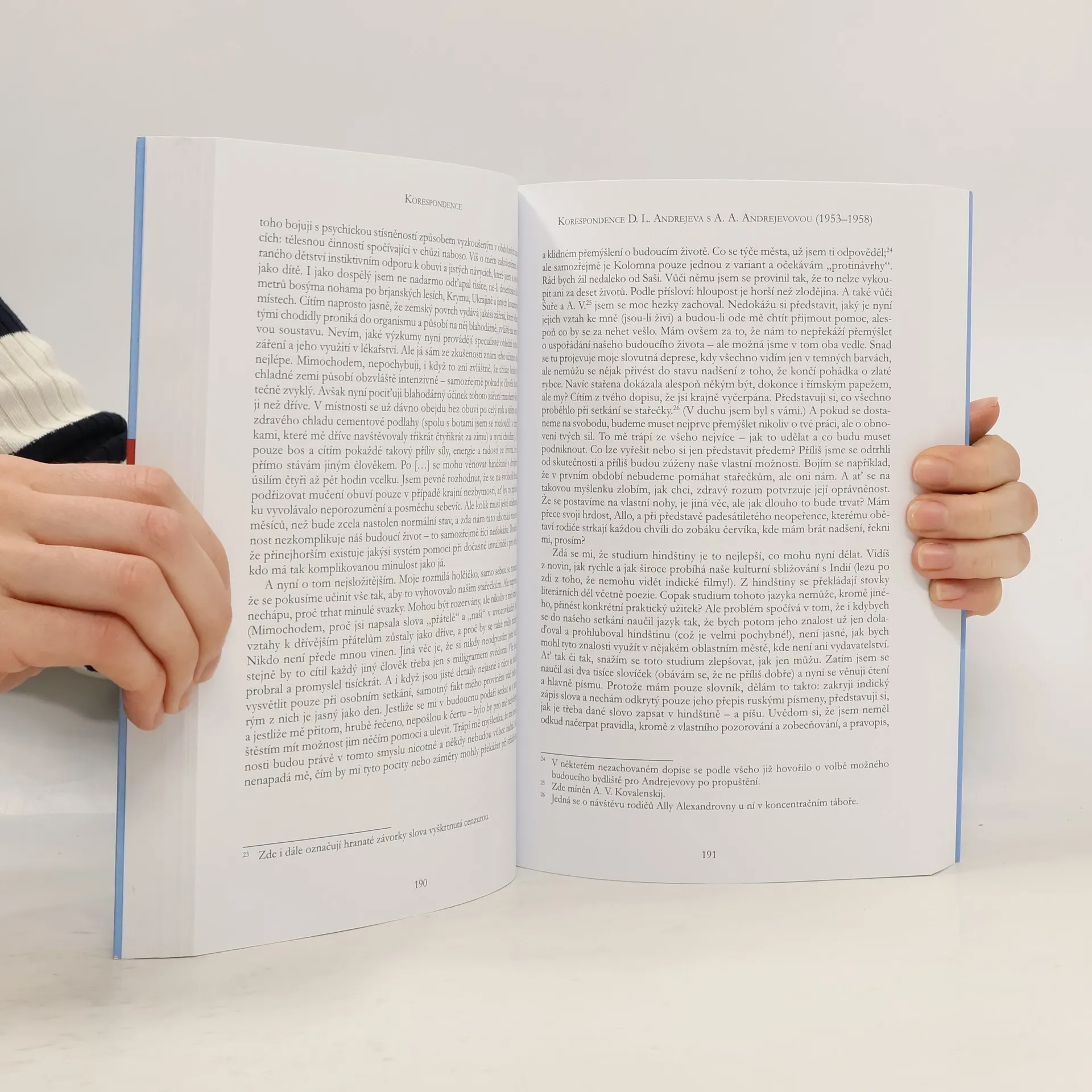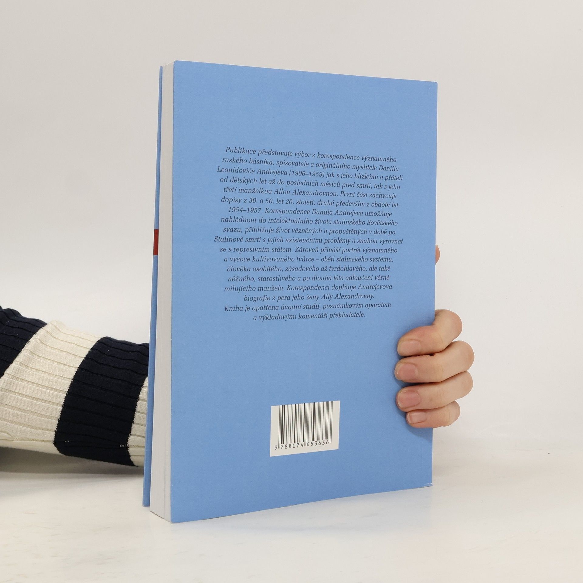 Publikace představuje výbor z korespondence významného ruského básníka Daniila Leonidoviče Andrejeva (1906–1959) jak s jeho blízkými a přáteli od dětských let až do posledních měsíců před smrtí, tak s jeho třetí manželkou Allou Alexandrovnou. První část zachycuje dopisy z 30. a 50. let20. století, druhá především z období let 1954–1957. Korespondence Daniila Andrejeva umožňuje nahlédnout do intelektuálního života stalinského Sovětského svazu, přibližuje život vězněných a propuštěných v době po Stalinově smrti s jejich existenčními problémy a snahou vyrovnat se s represivním státem. Zároveň přináší portrét významného a vysoce kultivovaného tvůrce – oběti stalinského systému, člověka osobitého, zásadového až tvrdohlavého, ale také něžného, starostlivého a po dlouhá léta odloučení věrně milujícího manžela. Korespondenci doplňuje Andrejevova biografie z pera jeho ženy Ally Alexandrovny. Kniha je opatřena úvodní studií, poznámkovým aparátem a výkladovými komentáři překladatele.