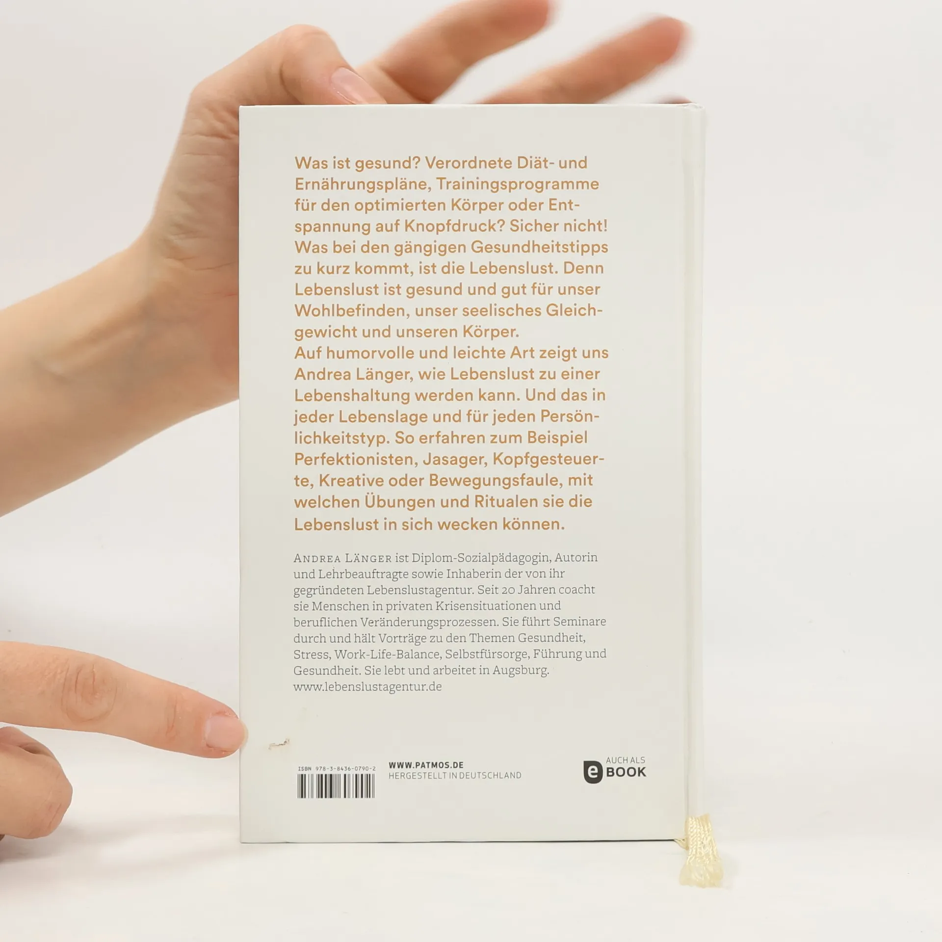 Wir wissen viel über Gesundheit, darüber, was wir tun und was wir besser lassen sollten. Doch verordnete Diät- und Ernährungspläne, Trainingsprogramme für den optimierten Körper oder Entspannung auf Knopfdruck erzeugen meist Stress und Zeitnot. Also genau die Faktoren, die der Gesundheit schaden. Was dabei fehlt, ist die Lebenslust! Denn Lebenslust ist gesund. Für unser Wohlbefinden, unser seelisches Gleichgewicht und unseren Körper. Auf humorvolle und leichte Art zeigt uns Andrea Länger, wie Lebenslust zu einer Lebenshaltung werden kann. Für unterschiedliche Persönlichkeitstypen und Lebenslagen hat sie die passenden Übungen entwickelt. So erfahren zum Beispiel Perfektionisten, Ja-Sager, Kopfgesteuerte, Kreative oder Bewegungsfaule mit welchen Tipps und Ritualen sie die Lebenslust in sich wecken können.