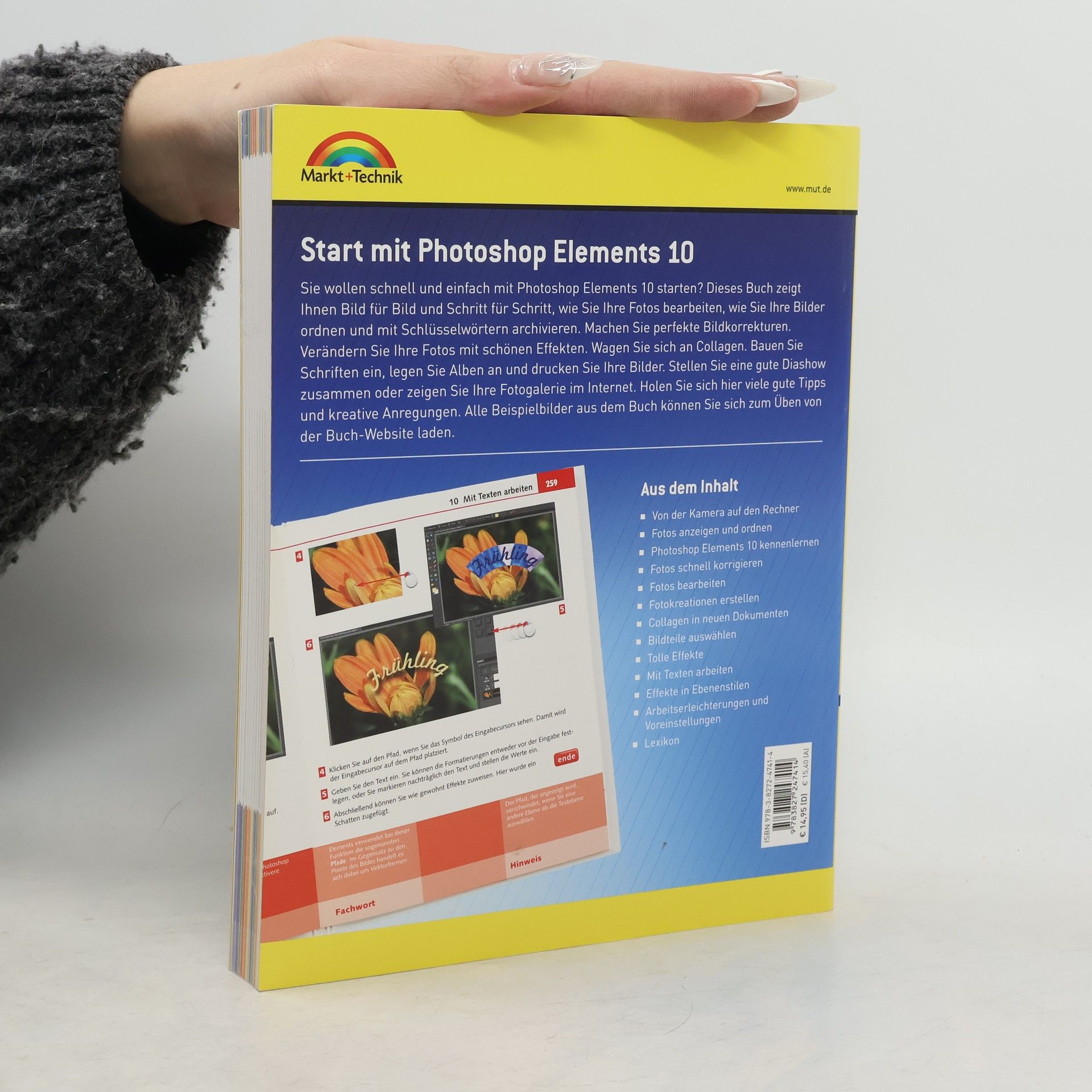 Sie möchten zum ersten Mal mit Photoshop Elements 10 Ihre Fotos bearbeiten? Dieses Buch zeigt Ihnen Bild für Bild wie das geht. Auf einen Blick sehen Sie, was Sie alles machen können. Übertragen Sie Ihre Fotos von der Kamera. Archivieren Sie sie mit Schlüsselwörtern. Machen Sie perfekte Bildkorrekturen oder veredeln Sie Ihre Bilder mit schönen Effekten. Bauen Sie Schriften ein, legen Sie Alben an, drucken Sie richtig und stellen Sie eine tolle Diashow zusammen.Hier finden Sie Downloads zu diesem Titel.