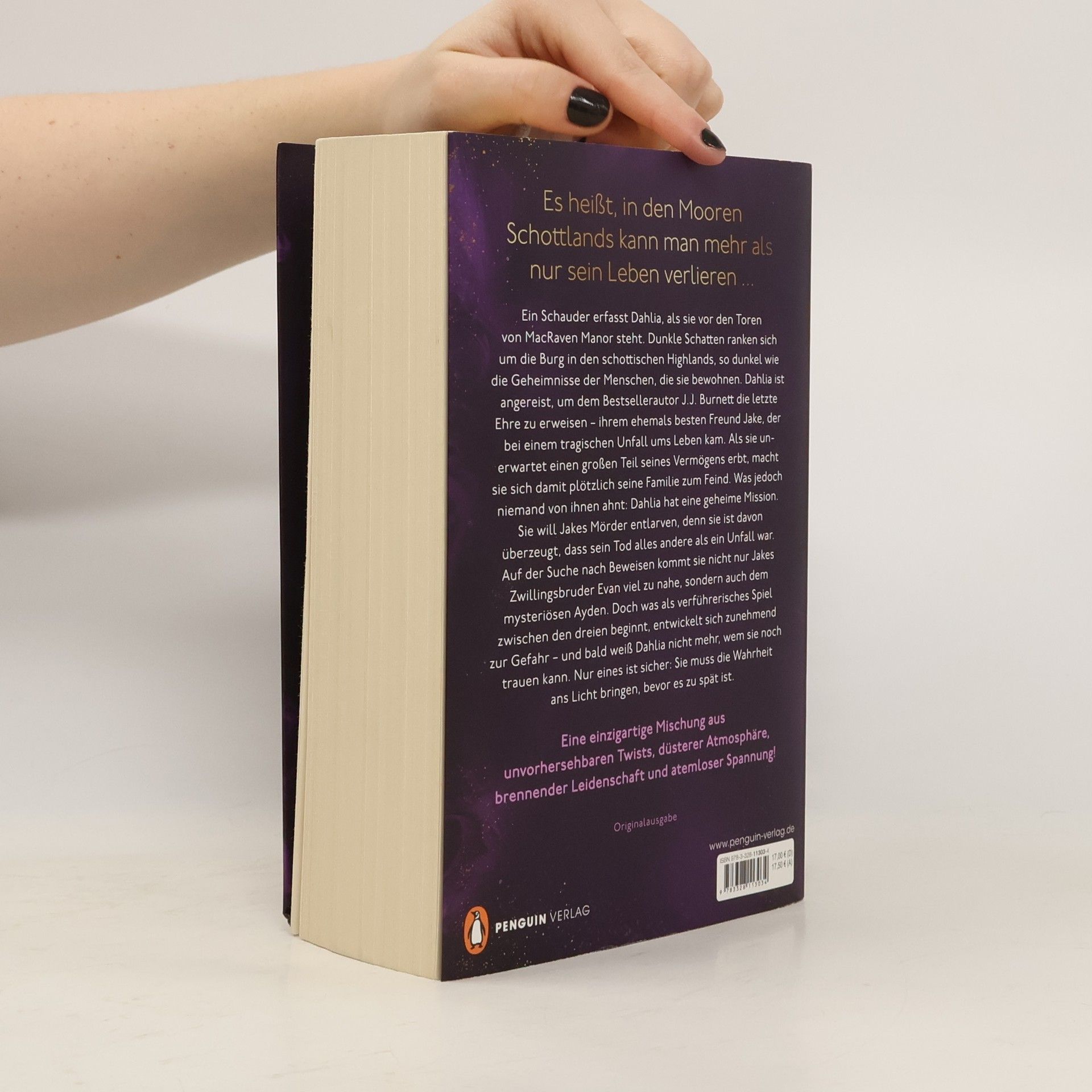 Es heißt, in den Mooren Schottlands kann man mehr als nur sein Leben verlieren ...Ein Schauder erfasst Dahlia, als sie vor den Toren von MacRaven Manor steht. Dunkle Schatten ranken sich um die Burg in den schottischen Highlands, so dunkel wie die Geheimnisse der Menschen, die sie bewohnen. Dahlia ist angereist, um dem Bestsellerautor J.J. Burnett die letzte Ehre zu erweisen – ihrem ehemals besten Freund Jake, der bei einem tragischen Unfall ums Leben kam. Als sie unerwartet einen großen Teil seines Vermögens erbt, macht sie sich damit plötzlich seine Familie zum Feind. Was jedoch niemand von ihnen ahnt: Dahlia hat eine geheime Mission. Sie will Jakes Mörder entlarven, denn sie ist davon überzeugt, dass sein Tod alles andere als ein Unfall war. Auf der Suche nach Beweisen kommt sie nicht nur Jakes Zwillingsbruder Evan viel zu nahe, sondern auch dem mysteriösen Ayden. Doch was als verführerisches Spiel zwischen den dreien beginnt, entwickelt sich zunehmend zur Gefahr – und bald weiß Dahlia nicht mehr, wem sie noch trauen kann. Nur eines ist sicher: Sie muss die Wahrheit ans Licht bringen, bevor es zu spät ist.Ein vertuschter Mord, ein Erbe in Millionenhöhe und eine Liebe, die gefährlicher kaum sein könnte … Düster, atmosphärisch, spannend und voller Leidenschaft.»BAD VIBES« ist perfekt für dich, wenn du auf diese Tropes stehst:• Spice & Thrill• Secrets & Lies• Enemies to Lovers• Dark Past• Forced Proximity
