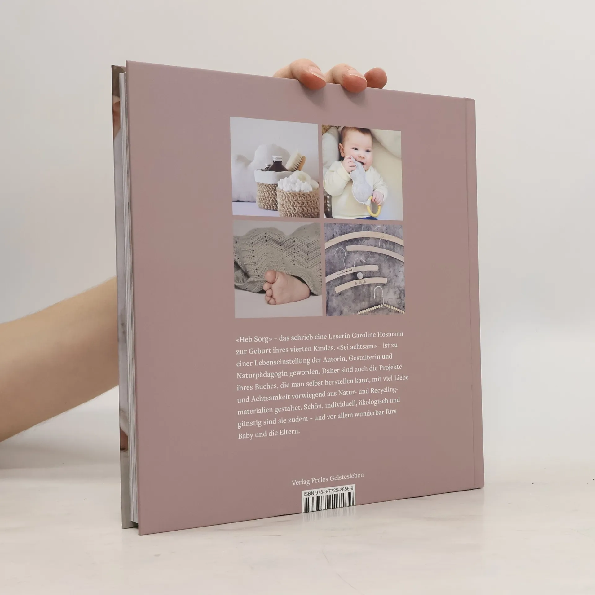 »Heb Sorg« – das schrieb eine Leserin Caroline Hosmann zur Geburt ihres vierten Kindes. »Sei achtsam« – ist zu einer Lebenseinstellung der Autorin, Gestalterin und Naturpädagogin geworden. Daher sind auch die Projekte ihres Buches, die man selbst herstellen kann, mit viel Liebe und eben Achtsamkeit vorwiegend aus Natur- und Recyclingmaterialien gestaltet. Schön, individuell, ökologisch und günstig sind sie zudem – und vor allem wunderbar fürs Baby und die Eltern.