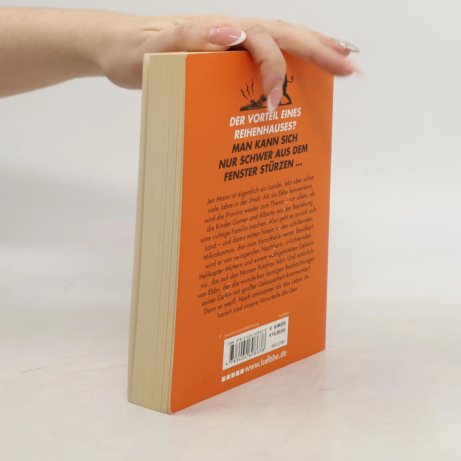 Der Vorteil eines Reihenhauses? Man kann sich nur schwer aus dem Fenster stürzen ...Es ist längst kein Trend mehr, sondern eine große soziale Junge Familien mit Kindern ziehen aus urbanen Bezirken der Stadt raus in den Vorort oder gleich aufs Land. Genau das hat auch Jen Mann Mit Gatte und zwei kleinen Kindern ein kleines Haus bezogen, mitten in einem schillernden Mikrokosmos, der sich Vorortsiedlung nennt.Was man in dieser Idylle erleben kann (und was nicht), erzählt Jen Mann mit Charme, Selbstironie und dem tröstlichen Wissen, dass man nie ganz allein ist. Denn sie weiß: das nächste Haus sitzt nebenan.Jen Mann ist die preisgekrönte Autorin des Buches "Spending the Holidays with People I Want to Punch in the Throat". Sie lebt mit Ebonizer, ihrem Ehemann, und den Kindern Comer und Adolpha in Kansas. Natürlich sind Comer und Adolpha nicht ihre richtigen Namen, die sind noch etwas schräger. In ihrer Freizeit widmet sich Jen dem Kunsthandwerk und engagiert sich für eine lokale PTO Eltern-Lehrer-Organisation. Kein Witz.