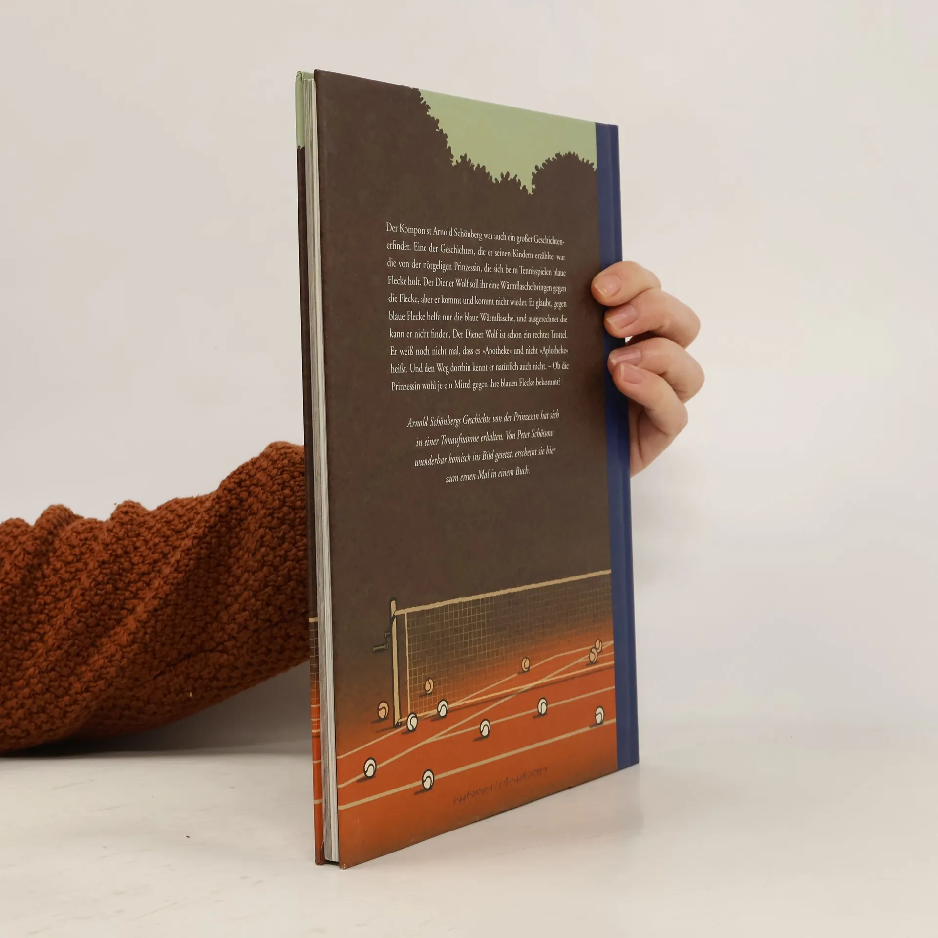 Was für ein Schlamassel! Die Prinzessin hat Tennis gespielt und liegt jetzt mit lauter blauen Flecken im Bett. Der trottelige Diener Wolf ist ihr keine Hilfe. Es dauert ewig, bis er eine Wärmflasche findet, was eine Apotheke ist, muss man ihm erst erklären, und zu guter Letzt vergisst er, wo die Prinzessin blaue Flecken hatte... Der Komponist Arnold Schönberg hat seinen Kindern besonders gern Geschichten von einer nörgeligen Prinzessin und ihrem vertrottelten Diener Wolf erzählt. Eine davon ist als Tonaufnahme erhalten und erscheint hier zum ersten Mal - mit herrlich komischen Bildern von Peter Schössow.