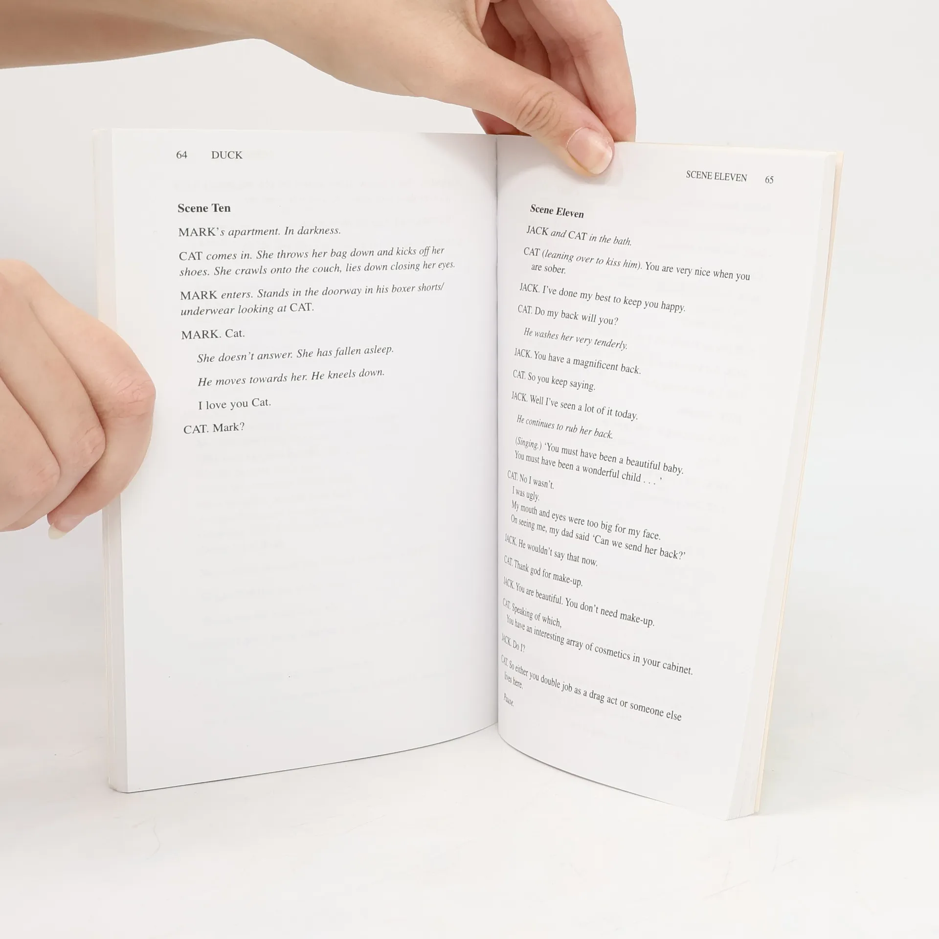 Set in Dublin, this play follows the doings of Cat, in her late teens and temping as a nightclub hostess. She tries to jolt-start her life by blowing up her boyfriend's car and hopping into bed with a 50-year-old married man before settling for companionship with her best mate Sophie. schovat popis