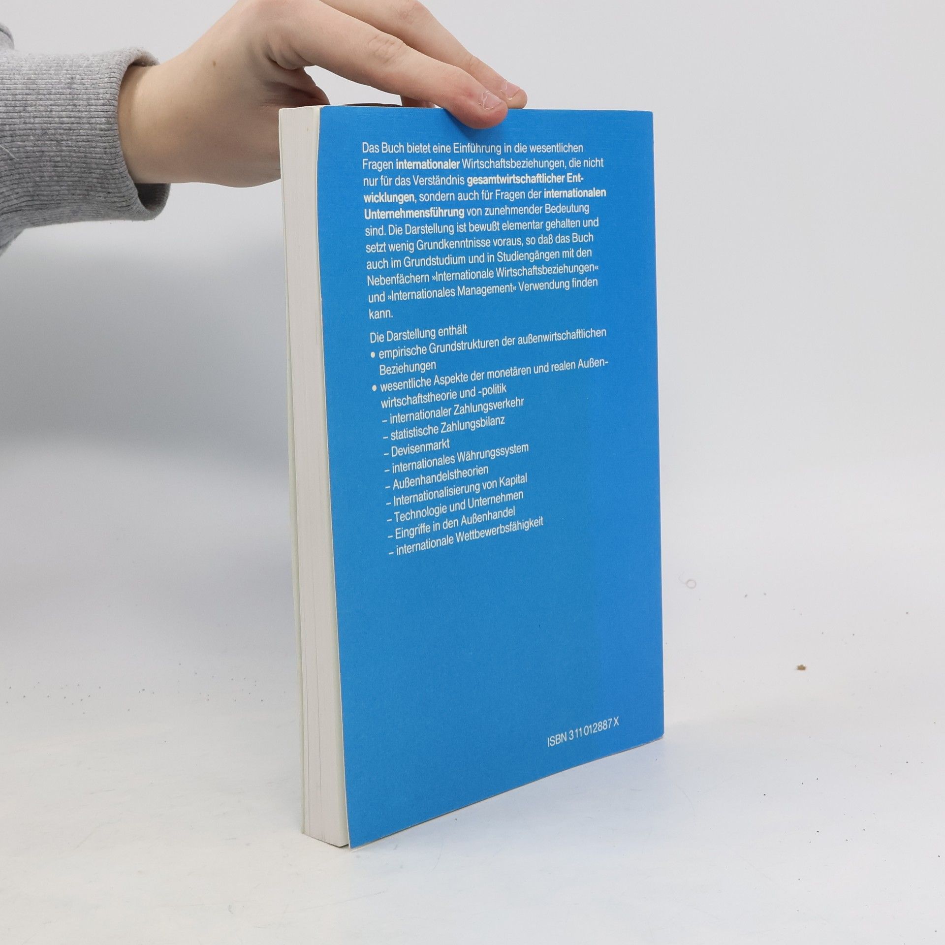 Das Werk wendet sich nicht nur an Studierende der Volkswirtschaftslehre, sondern auch an angehende Betriebswirte, die sich fur Fragen internationaler Wirtschaftsbeziehungen bzw. des internationalen Managements interessieren, sowie an Studenten anderer Fachrichtungen. Aus dem Inhalt: Einfuhrung. Der internationale Zahlungsverkehr. Die statistische Zahlungsbilanz. Der Devisenmarkt. Zahlungsbilanzungleichgewicht und Zahlungsbilanzausgleich. Das internationale Wahrungssystem. Reale Aussenwirtschaftstheorie. Internationale Faktorallokation. Aussenwirtschaftspolitik. Internationale Wettbewerbsfahigkeit."