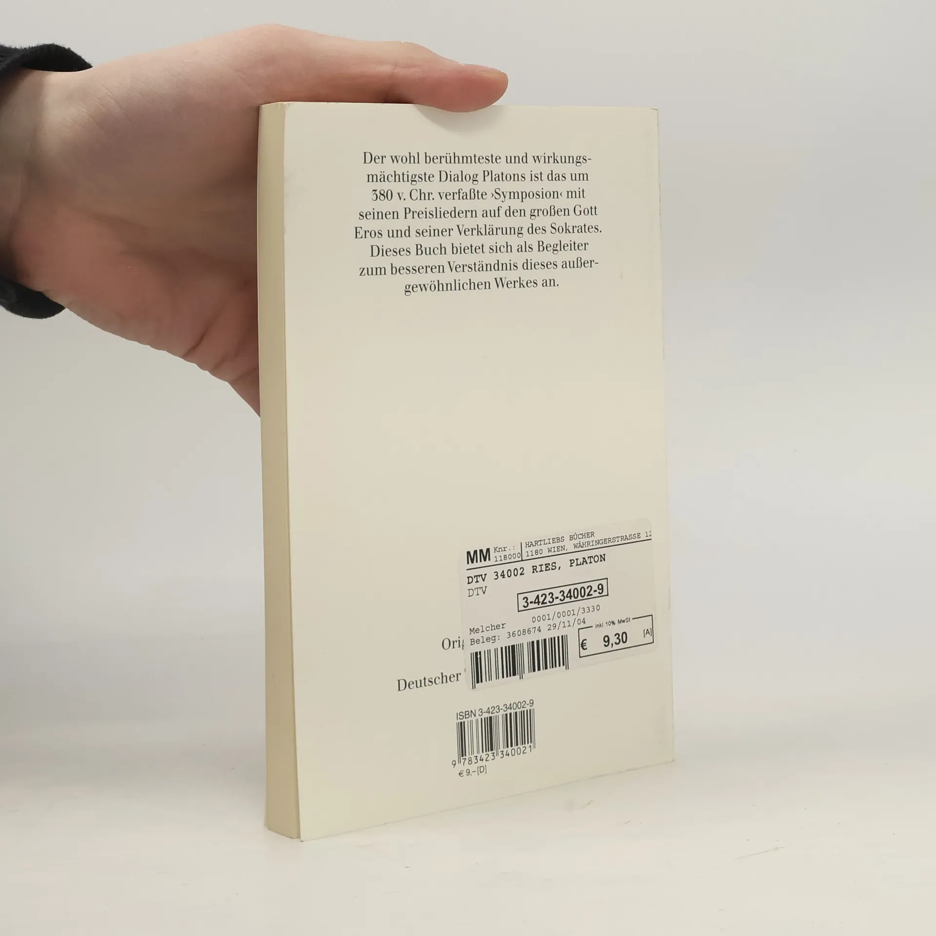 Der wohl berühmteste wie wirkungsmächtigste Dialog des großen griechischen Philosophen Platon ist das um 380 v. Chr. verfasste "Symposion".. Im Mittelpunkt dieses Gastmahls oder Trinkgelages steht vor allem der Eros als jenes Verlangen, das von der sinnlich aufleuchtenden Erscheinung des Schönen zur Idee des göttlich Schönen selbst hinlenkt. Dieses beeindruckende Lehrstück, in dem die »platonische Liebe« grundgelegt wird, zählt zu den schönsten, aber gleichzeitig schwierigsten Werken der abendländischen Philosophie.