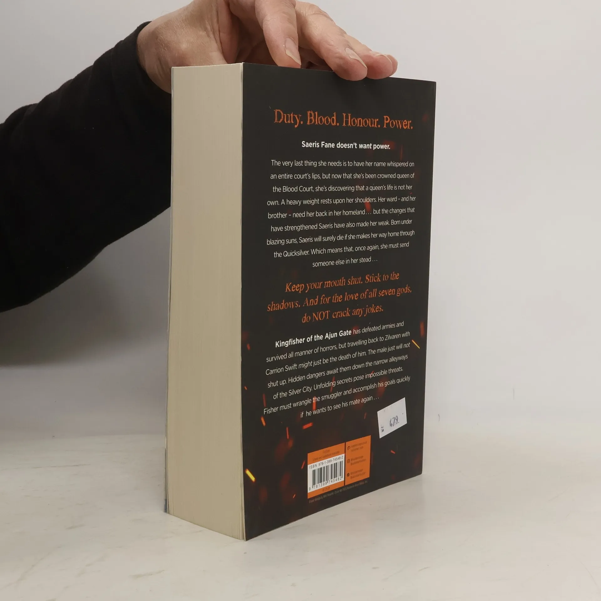 Duty. Blood. Honour. Power.Saeris Fane doesn't want power. The very last thing she needs is her name whispered on an entire court's lips, but now that she's been crowned queen of the Blood Court, she's discovering that a queen's life is not her own. A heavy weight rests upon her shoulders.Her ward - and her brother - need her back in her homeland . . . but the changes that have strengthened Saeris have also made her weak. Born under blazing suns, Saeris will surely die if she makes her way home through the Quicksilver. Which means that, once again, she must send someone else in her stead . . .'Keep your mouth shut. Stick to the shadows. And for the love of all seven Gods, do NOT crack any jokes.'Kingfisher of the Ajun Gate has defeated armies and survived all manner of horrors, but traveling back to Zilvaren with Carrion Swift might just be the death of him. The male just will not shut up. Hidden dangers await them down the narrow alleyways of the Silver City. Unfolding secrets pose impossible threats. Fisher must wrangle the smuggler and accomplish his goals quickly if he wants to see his mate again.A darkness falls across Yvelia. The realm and their friends are in danger. Together, Saeris and Fisher will pass through fire and brimstone to save them.