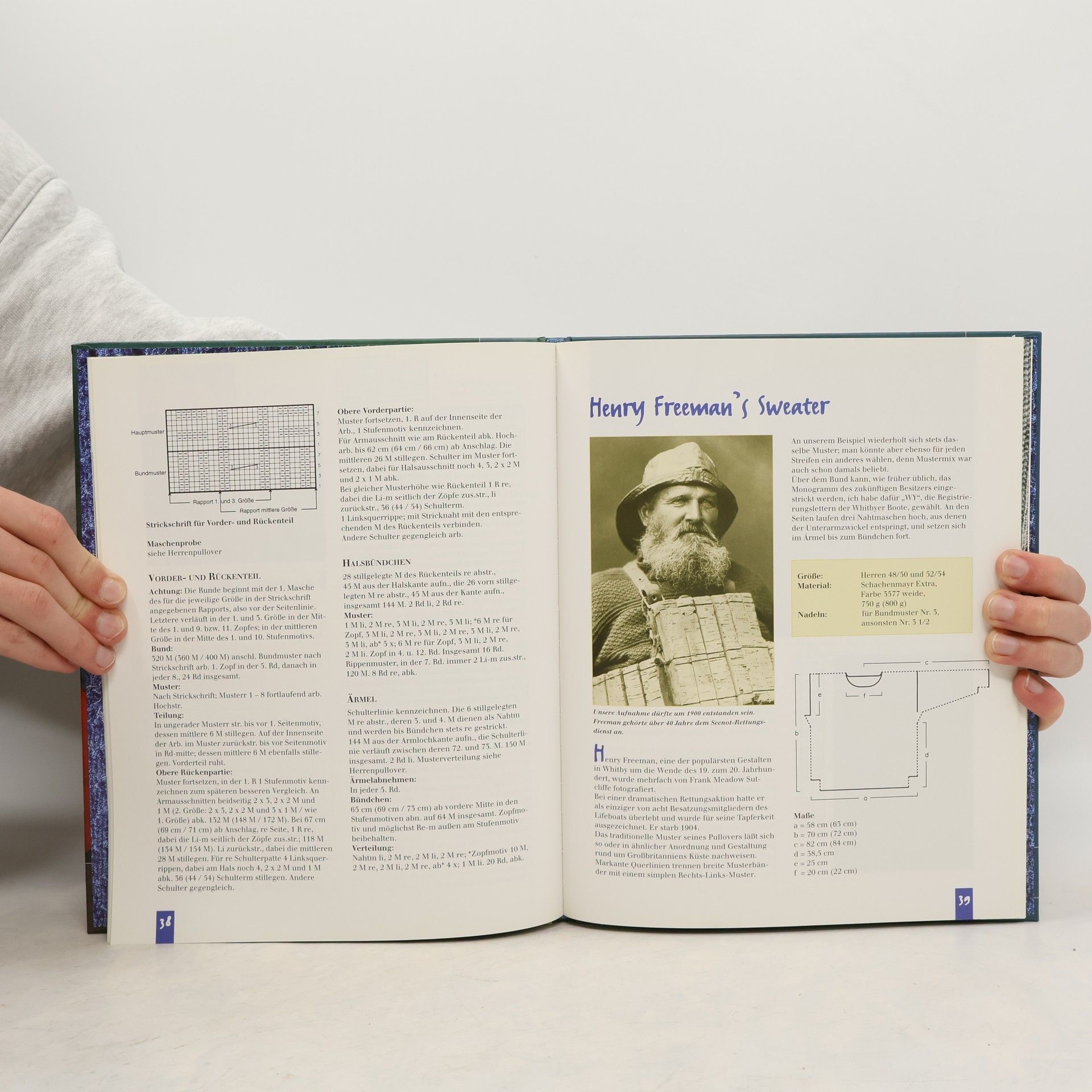 Om fiskertrøjer fra England med gennemgang af deres historie og udvikling samt eksempler på opskrifter