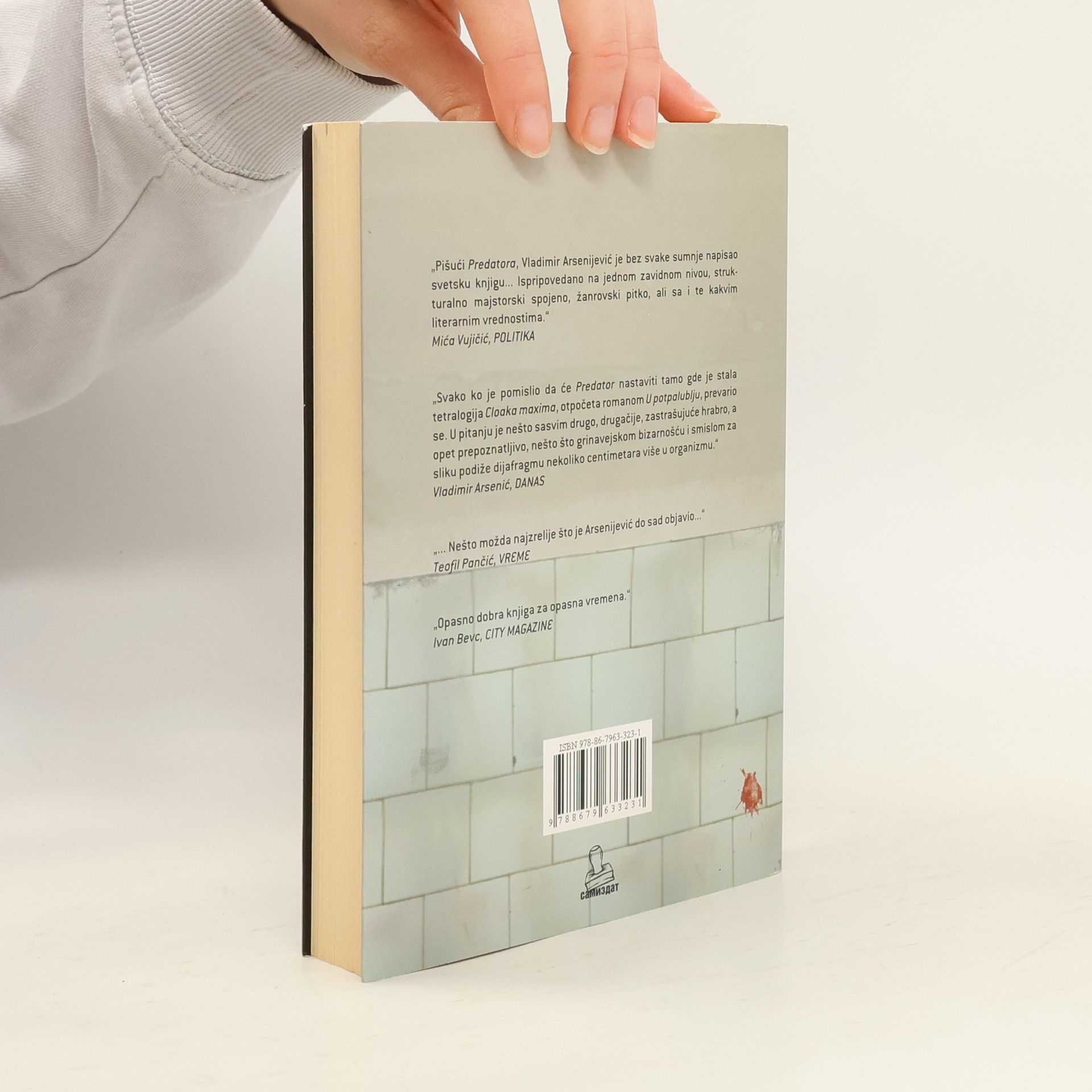 ``Na naslovnu priču zbirke „Predator“ Vladimir Arsenijević je na različite načine nadovezao ostale priče i tako stvorio romanesknu celinu koja suočava čitaoca s opakom komadinom vrlo savremenog sveta u kome je sve globalno povezano: Nihil Musa Baksi, Kurd iz Halabdže, američka TV-zvezda na zalasku Oahu Džim, proterani Albanac s Kosova panker Dren Kastrati, bosanski džanki Hasan Halilović Dambo, prečasni Padraig O`Neill, irački islednik, beogradski mangupi i berlinski anarhisti.Arsenijevića pri tom više opčinjava lokalno, nesvodljivo i različito, nego globalna uravnilovka. Govor njegovih likova sa svih strana sveta protkan je frazama na maternjem im jeziku (što nimalo ne otežava čitanje), a priče donose i lep popis lokalnih jela, namirnica i običaja. I jednog kanibala, spomenutog nihilističnog Nihila Musu, kao i prosvećeni gastronomski hedonizam, diktature, prvomajske demonstracije, ljubav, politiku, opsesije, narkomaniju, književnost...Knjige Vladimira Arsenijevića prevedene su do sada na dvadesetak svetskih jezika. Ovo izdanje, čiju svetsku premijeru imate priliku da čitate, uverljivo pokazuje zašto.``Kruno Lokotar