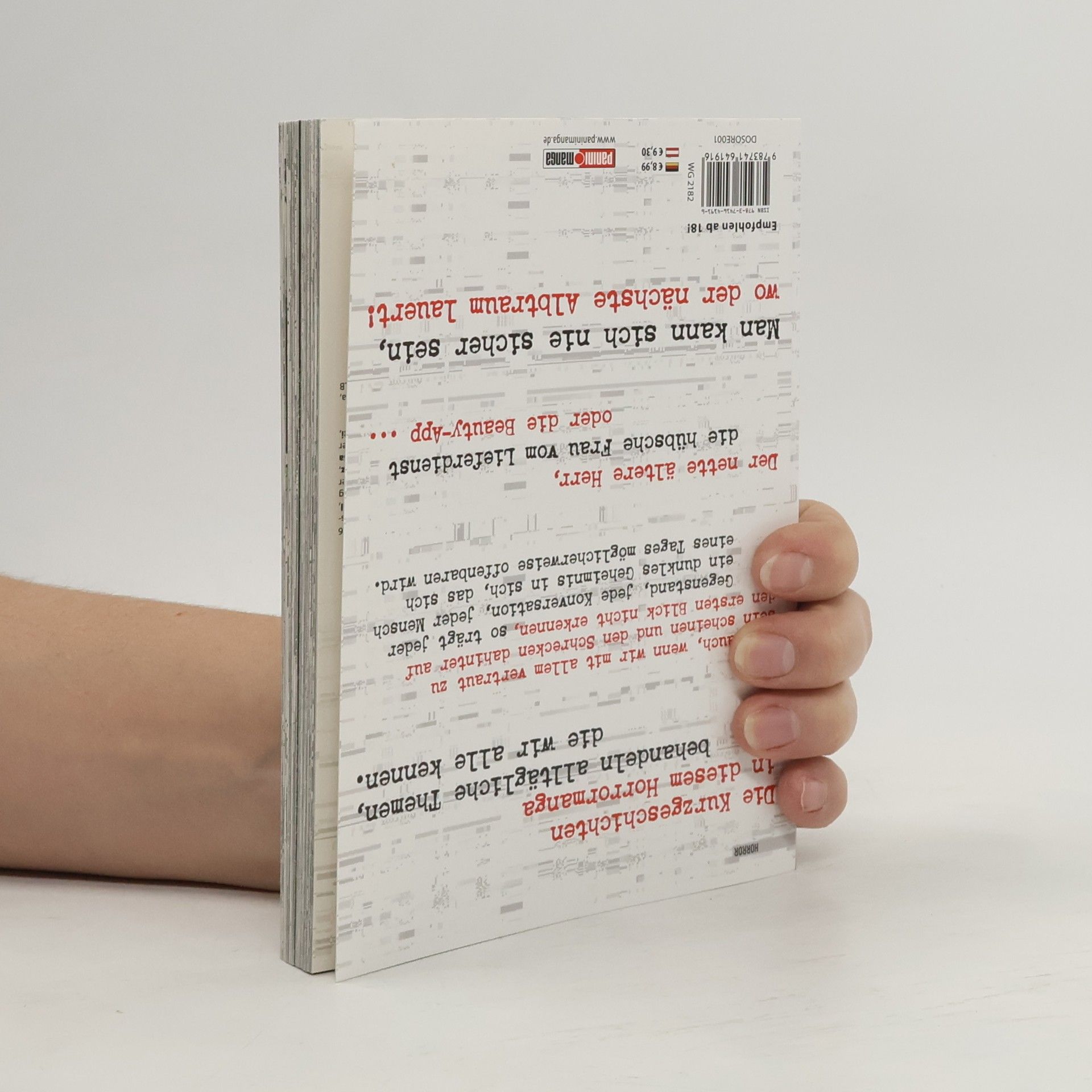 Die Kurzgeschichten in diesen Horrormanga behandeln alltägliche Themen, die wir alle kennen.Doch auch, wenn wir mit allem vertraut zu sein scheinen und den Schrecken dahinter auf den ersten Blick nicht erkennen, so trägt doch jeder Gegenstand, jede Konversation, jeder Mensch ein dunkles Geheimnis in sich, das sich eines Tages möglicherweise offenbaren wird.Der nette ältere Herr, die hübsche Frau vom Lieferdienst oder die Beauty-App …Man kann sich nie sicher sein, wo der nächste Albtraum lauert.Für Fans von Junji Ito und Kazuo Umezu!