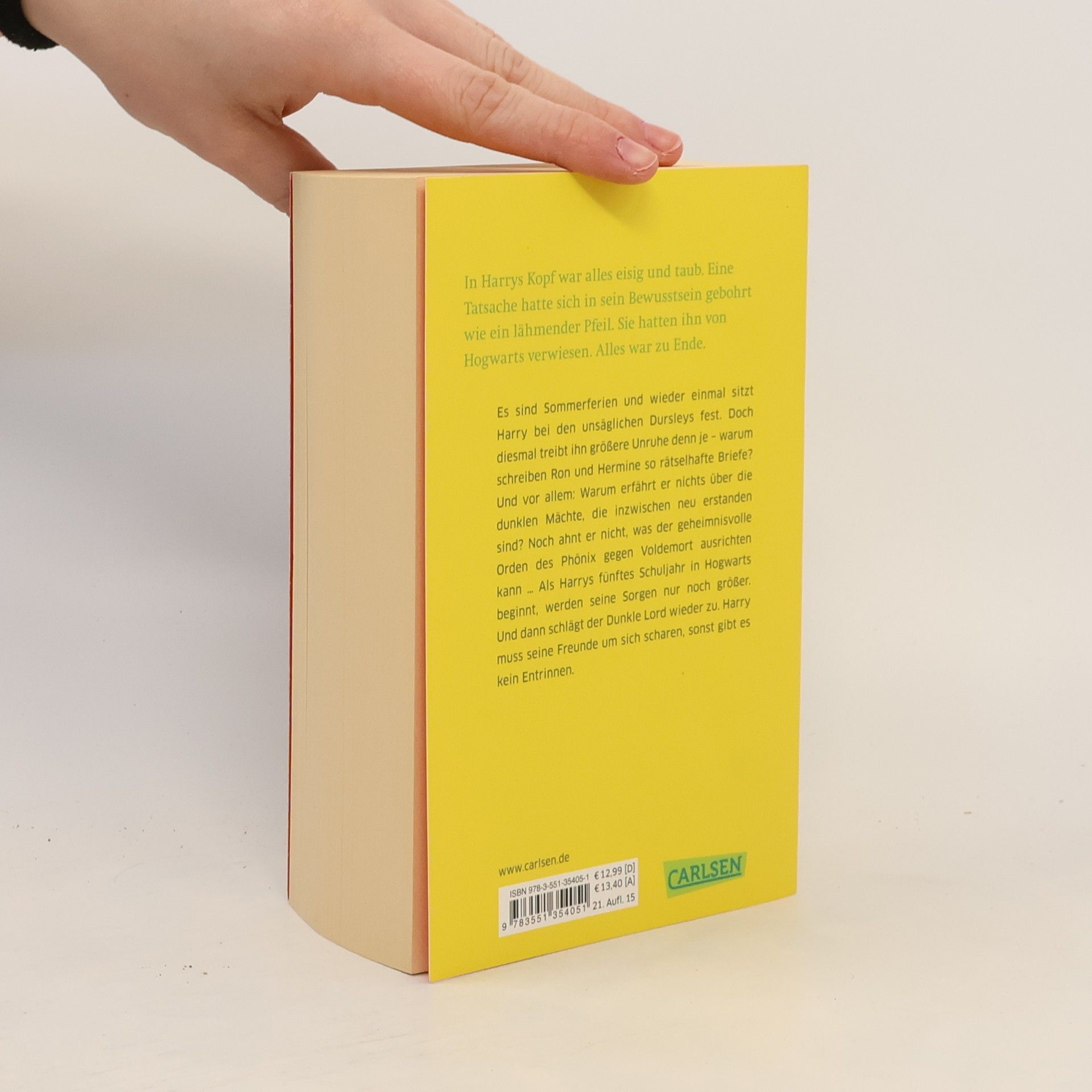 Es sind Sommerferien und wieder einmal sitzt Harry bei den unsäglichen Dursleys fest. Doch diesmal treibt ihn größere Unruhe denn je – warum erfährt er nichts über die dunklen Mächte, die inzwischen neu erstanden sind? Noch ahnt er nicht, was der geheimnisvolle Orden des Phönix gegen Voldemort ausrichten kann ... Doch dann schlägt der Dunkle Lord wieder zu. Harry muss seine Freunde um sich scharen, sonst gibt es kein Entrinnen. Dies ist der fünfte Band der international erfolgreichen Harry-Potter-Serie, die Generationen geprägt hat. Alle Bände der Serie: Harry Potter und der Stein der WeisenHarry Potter und die Kammer des SchreckensHarry Potter und der Gefangene von AskabanHarry Potter und der FeuerkelchHarry Potter und der Orden des PhönixHarry Potter und der HalbblutprinzHarry Potter und die Heiligtümer des Todes Die Harry-Potter-Serie ist abgeschlossen.