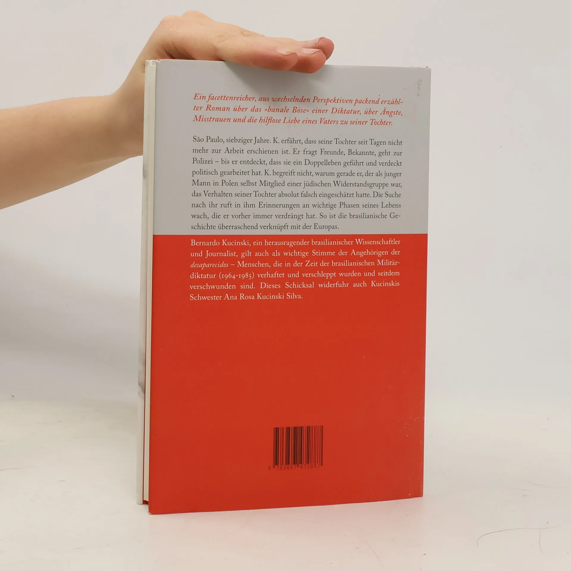 Ein facettenreicher, mit wechselnden Perspektiven packend erzählter Roman über das "banale Böse" einer Diktatur, über Ängste, Misstrauen und die hilflose Liebe eines Vaters zu seiner Tochter.São Paulo in den siebziger Jahren. K., Besitzer eines Geschäfts für Herrenmode, erhält einen Anruf aus dem Labor, in dem seine Tochter als Chemikerin arbeitet: sie sei seit vierzehn Tagen dort nicht mehr erschienen. Er fragt ihre Freunde, Bekannte, geht mit ihrem Foto zur Polizei bis er schließlich auf Umwegen erfährt, dass sie seit Jahren ein Doppelleben führte und mit ihrem Mann verdeckt politisch arbeitete. Für K. ist das aus mehreren Gründen schockierend: Er glaubte seine Tochter, sein Lieblingskind, genau zu kennen und hielt sie für völlig unpolitisch. Und er begreift nicht, warum gerade er, der Mitte der dreißiger Jahre in Polen selber Mitglied einer jüdischen Widerstandsgruppe und nach einer Haftstrafe nach Brasilien geflohen war, auffällige Indizien im Verhalten seiner Tochter komplett falsch eingeschätzt hatte. Er hätte es wissen müssen und sie retten können. Sein Leben besteht danach aus einer doppelten Suche: Er will herausfinden, wer seine Tochter wirklich war, und, am wichtigsten: ob sie noch lebt. Diese Suche provoziert Erinnerungen an seine eigene Jugend, wichtige Phasen seines Lebens, die er vorher immer verdrängt hatte. So verschränkt sich brasilianische überraschend mit europäischer Geschichte.