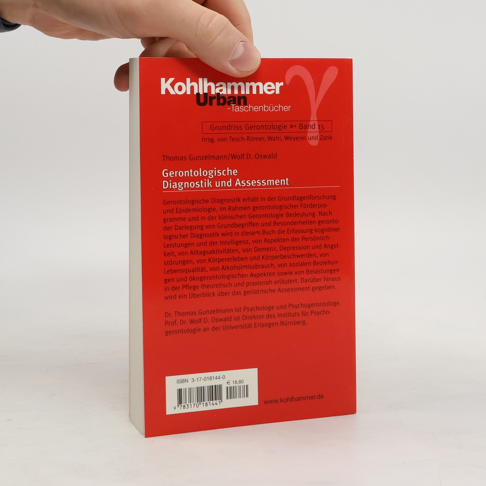 Gerontologische Diagnostik erhalt in der Grundlagenforschung und Epidemiologie, im Rahmen gerontologischer Forderprogramme und in der klinischen Gerontologie Bedeutung. Nach der Darlegung von Grundbegriffen und Besonderheiten gerontologischer Diagnostik wird in diesem Buch die Erfassung kognitiver Leistungen und der Intelligenz, von Aspekten der Personlichkeit, von Alltagsaktivitaten, von Demenz, Depression und Angststorungen, von Korpererleben und Korperbeschwerden, von Lebensqualitat, von Alkoholmissbrauch, von sozialen Beziehungen und okogerontologischen Aspekten sowie von Belastungen in der Pflege theoretisch und praxisnah erlautert. Daruber hinaus wird ein Uberblick uber das geriatrische Assessment gegeben.