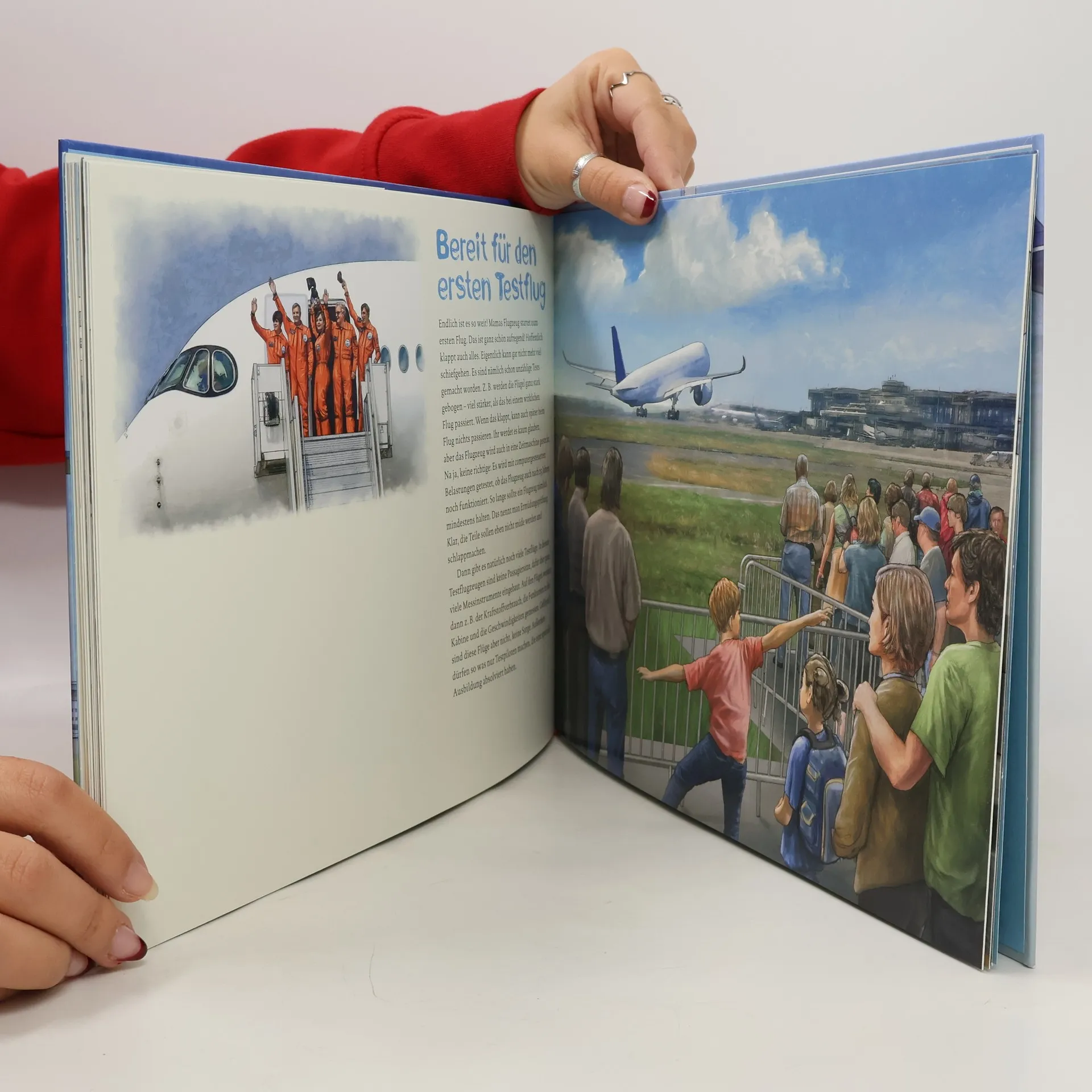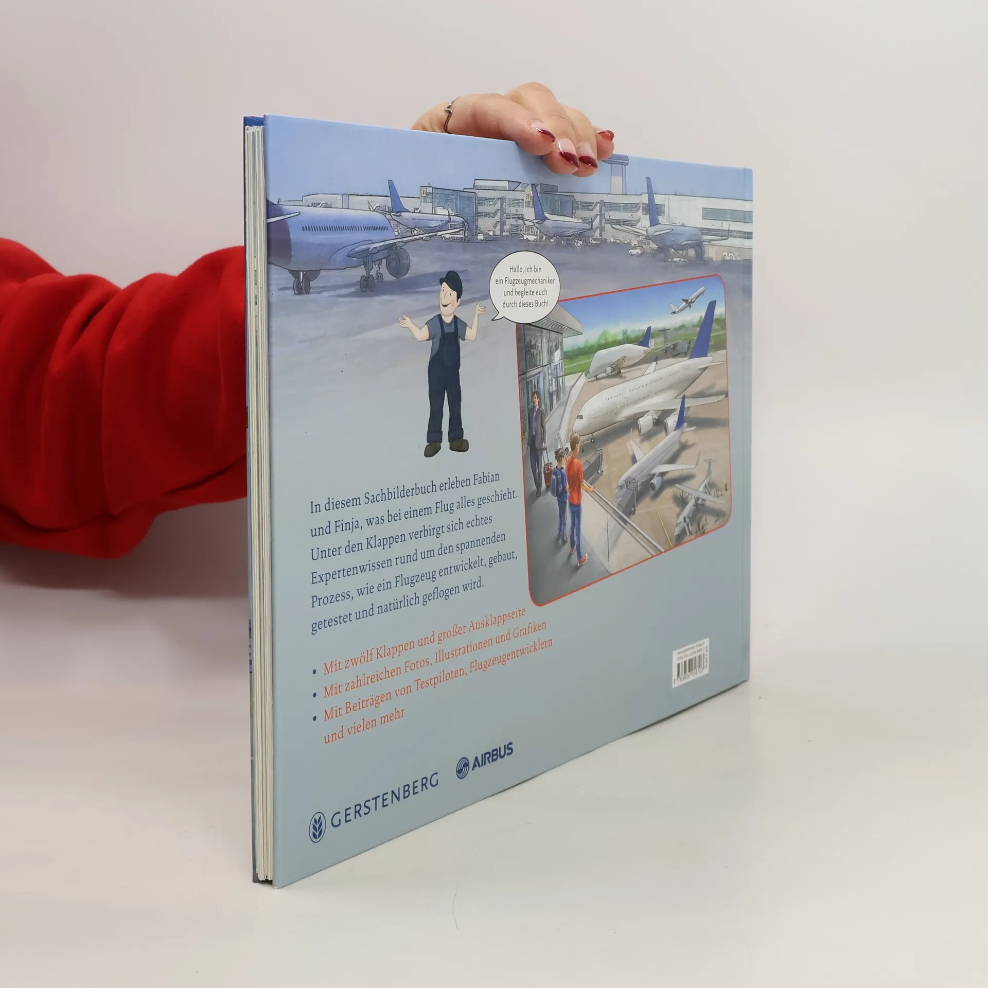 Fabian und Finja sind eingeladen, beim Jungfernflug eines Passagierflugzeugs dabei zu sein. Klar, dass es zu diesem großen Ereignis per Flugzeug geht! In diesem Sachbilderbuch erleben die Kinder, was bei einem Flug alles geschieht. Der anschauliche Erzähltext mit den großformatigen Illustrationen wird durch Klappen ergänzt. Unter ihnen verbirgt sich echtes Expertenwissen rund um den spannenden Prozess, wie ein Flugzeug entwickelt, gebaut, getestet und natürlich auch geflogen wird. Mit zwölf Klappen, großer Ausklappseite, zahlreichen Fotos, Illustrationen und Grafiken sowie Beiträgen von Testpiloten, Flugzeugentwicklern und vielen mehr!