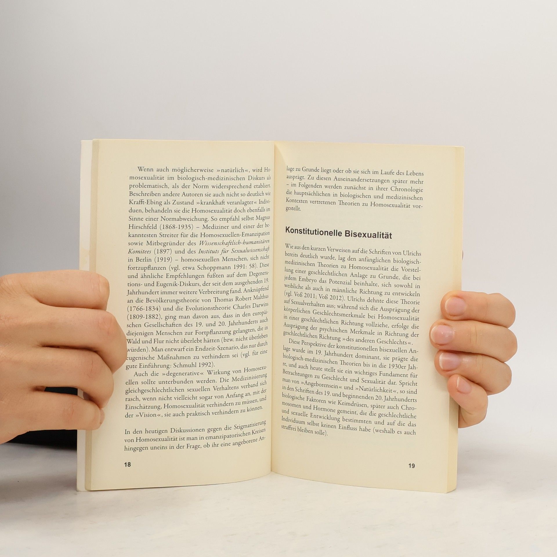 Das Konzept ›Homosexualität‹ entstand im 19. Jahrhundert und ist eng mit Biologie und Medizin verwoben. Vor dem Hintergrund der massiven staatlichen Verfolgung gleichgeschlechtlicher sexueller Handlungen argumentierten Menschen mit der ›Natürlichkeit‹ gleichgeschlechtlichen sexuellen Tuns.›Von Natur aus‹ gleichgeschlechtlich begehrend, dürften die so handelnden Menschen nicht bestraft werden. Auch die Gegenseite argumentierte biologisch-medizinisch. Beide Richtungen trugen damit dazu bei, dass „Homosexualität“ als Konzept etabliert und Biologie und Medizin zu bestimmenden Instanzen über die Legitimität sexuellen Handelns wurden.Ausgehend von der Genese des Homosexualitäts-Diskurses erläutert der Biologe Heinz-Jürgen Voß die damit verbundenen biologischen Theorien. Dabei stehen Theorien der Keimdrüsen- und Hormonforschung, der Genetik, Neurobiologie und Evolutionsbiologie sowie ihre jeweiligen Methoden im Fokus. Der Autor arbeitet heraus, dass die Forschung vielfach von dem Ziel geleitet war, gleichgeschlechtliches sexuelles Begehren auszulöschen. Die Grenzen zu Menschenexperimenten wurden dabei auch noch nach 1945 überschritten.Da Homosexualität 1991 aus der internationalen Klassifikation der Krankheiten (ICD) gestrichen wurde, bietet sich aktuell das Potenzial, auch die Forschung neu – ohne diskriminierende Vorannahmen – auszurichten.