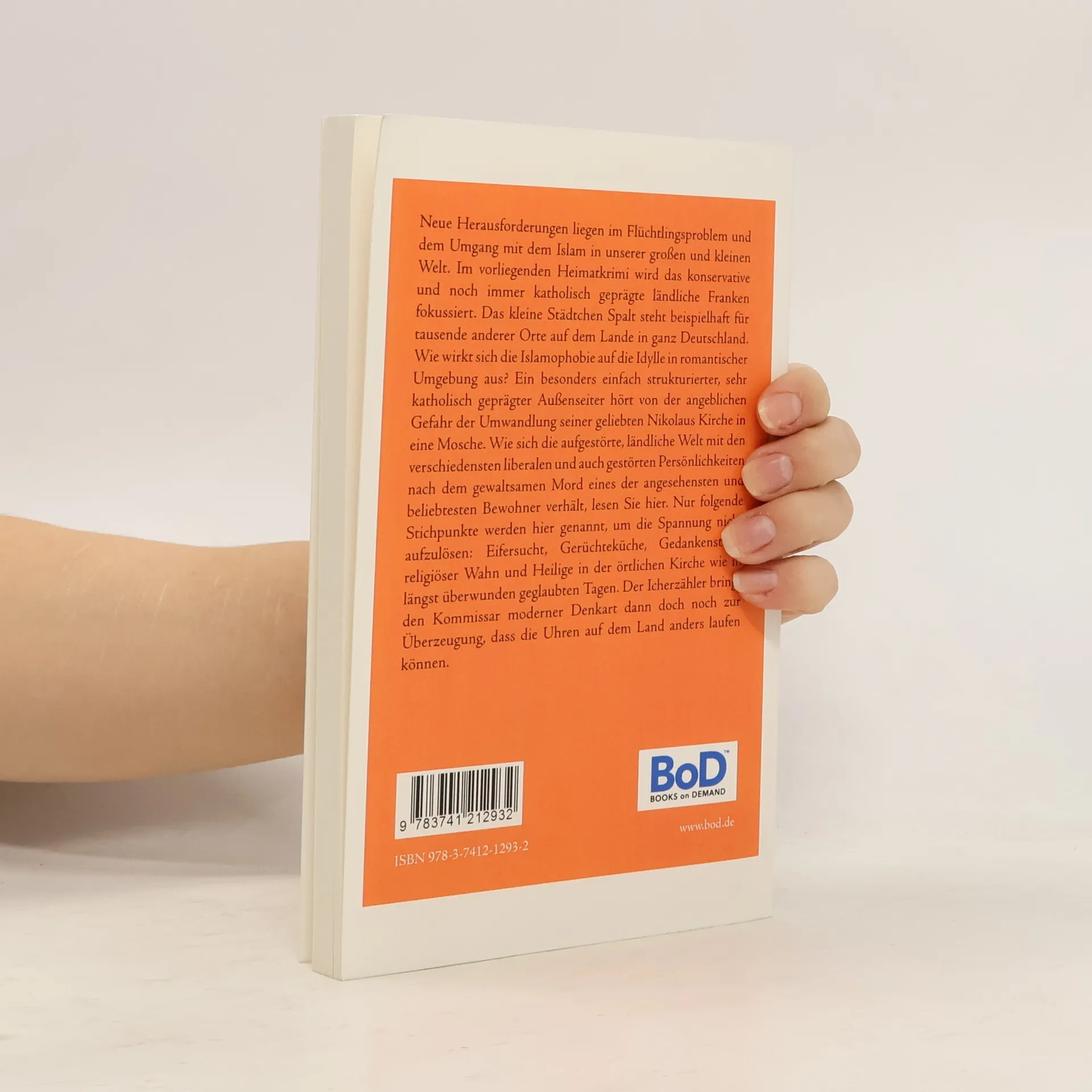 Neue Herausforderungen liegen im Flüchtlingsproblem und dem Umgang mit dem Islam in unserer großen und kleinen Welt. Im vorliegenden Heimatkrimi wird das konservative und noch immer katholisch geprägte ländliche Franken fokussiert. Das kleine Städtchen Spalt steht beispielhaft für tausende anderer Orte auf dem Lande in ganz Deutschland. Wie wirkt sich die Islamophobie auf die Idylle in romantischer Umgebung aus? Ein besonders einfach strukturierter, sehr katholisch geprägter Außenseiter hört von der angeblichen Gefahr der Umwandlung seiner geliebten Nikolaus Kirche in eine Mosche. Wie sich die aufgestörte, ländliche Welt mit den verschiedensten liberalen und auch gestörten Persönlichkeiten nach dem gewaltsamen Mord eines der angesehensten und beliebtesten Bewohner verhält, lesen Sie hier. Nur folgende Stichpunkte werden hier genannt, um die Spannung nicht aufzulösen: Eifersucht, Gerüchteküche, Gedankenstreit, religiöser Wahn und Heilige in der örtlichen Kirche wie in längst überwunden geglaubten Tagen. Der Icherzähler bringt den Kommissar moderner Denkart dann doch noch zur Überzeugung, dass die Uhren auf dem Land anders laufen können.