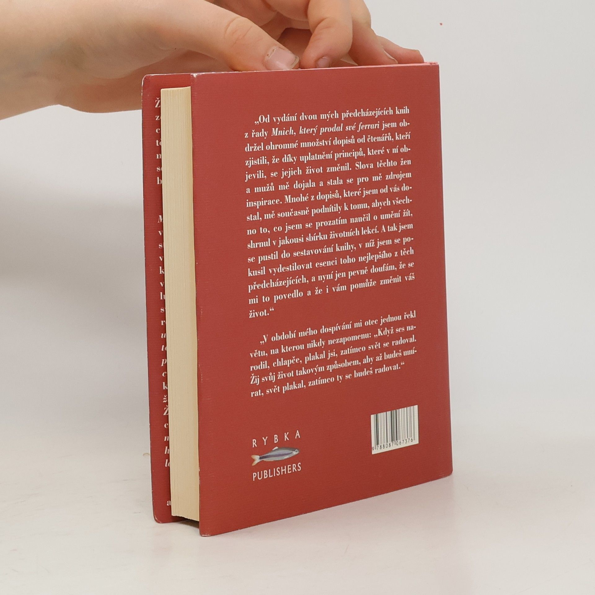 Žijete plným a smysluplým životem? Využíváte zcela svých možností, svého vnitřního potenciá­lu? Máte jasno v tom, co byste chtěli v životě dokázat? Umíte odpouštět? Žijete tak, abys­te mohli umřít štastní? Co po sobě zanecháte, až se odeberete na věčnost? A komu budete chybět – kdo bude plakat, až tady ne­­budete? Robin Sharma, autor světového bestselleru Mnich, který prodal své ferrari, shrnul svou životní moudrost a filozofii, jakož i praktické postřehy a poznatky do stovky životních lekcí, v nichž ve zhuštěné podobě formuluje principy, které by si měl osvojit každý, kdo se rozhodl vzít život do vlastních rukou a učinit jej smysluplným. Záběr otázek a rad, které autor ve svém malém životním rádci předestírá, je široký – od zdánlivě prostých doporučení (Naučte se žádat o to, co chcete; Soustřed’te se na to podstatné; Prožijte den bez hodinek; Res­pek­tujte své instinkty; Vytvořte si osobní kodex chování; Naučte se mlčet) přes hluboké výzvy k zamyšlení (Objevte své poslání; Neodkládejte život na neurčito; Důležitá je cesta, nejen cíl; Žijte tak, abyste mohli umřít š astní) až po lek­ce zcela nevšední a originální