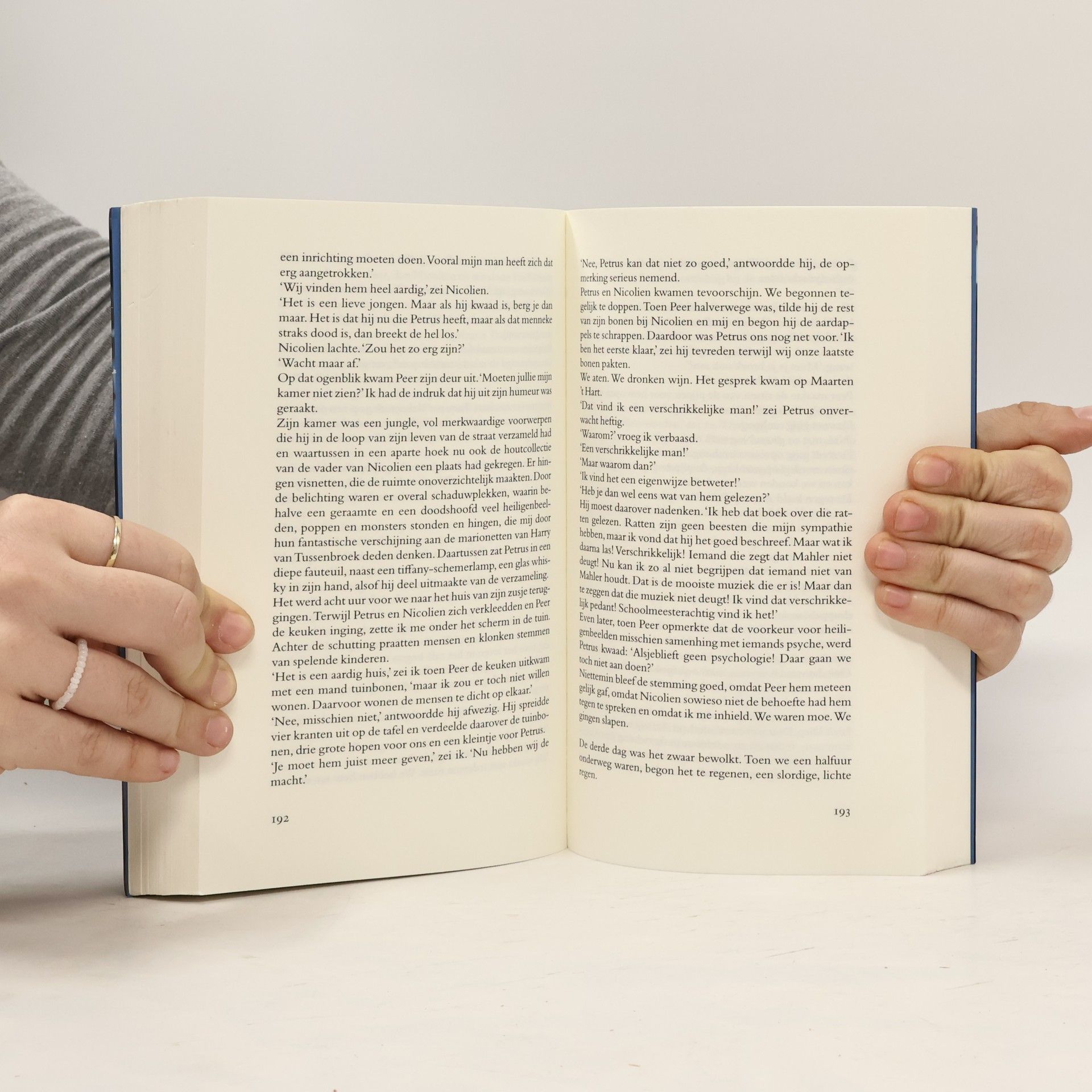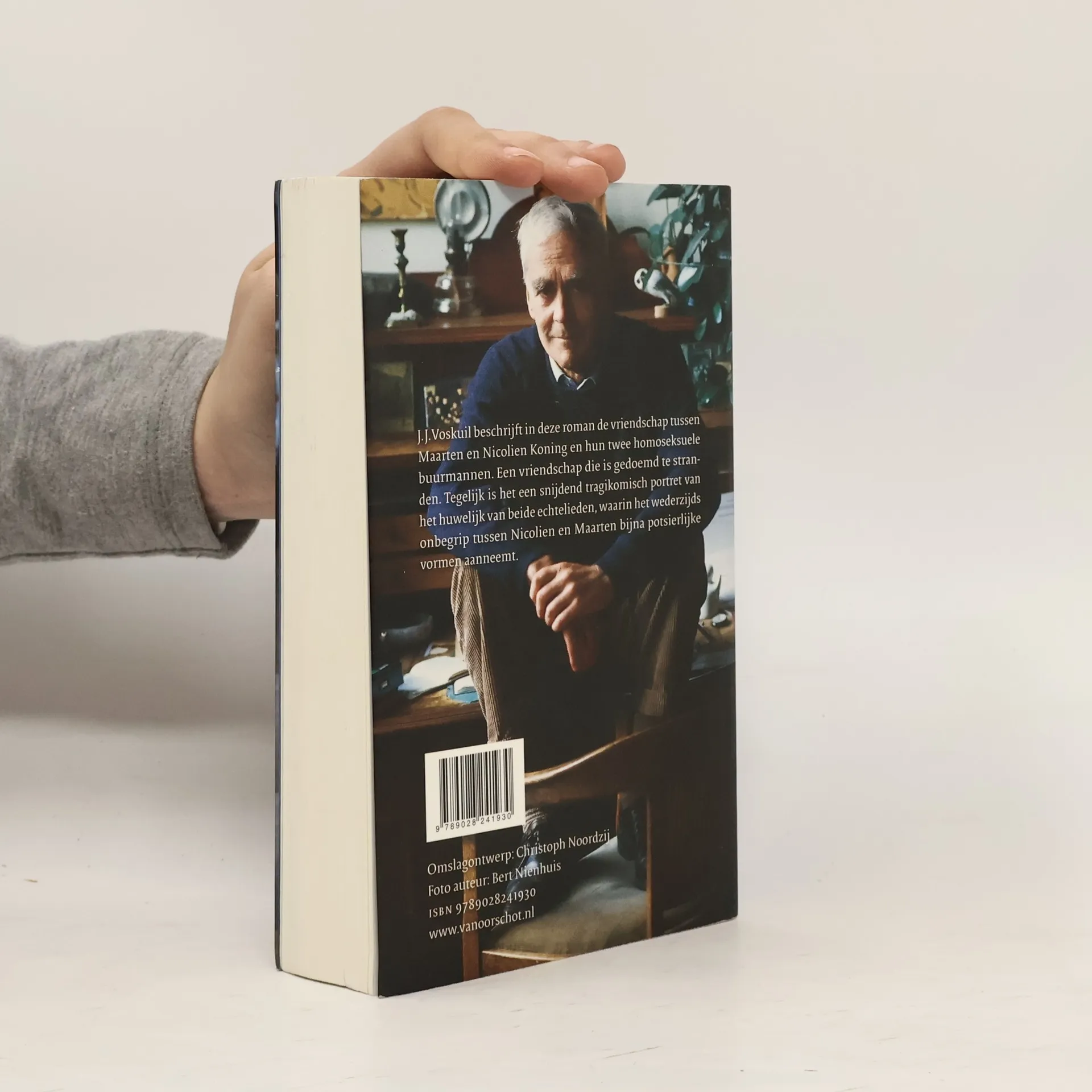 J.J. Voskuil (19262008) was a Dutch novelist known best for his epic cycle of novels Het Bureau. This novel was published posthumously by his wife, and is another Voskuil classic well worth reading. The story describes the friendship between Maarten and Nicolien Koning and their two homosexual neighbours. Voskuil's narrative does not shy away from conflict and misunderstandings, and is a very lively portrait of Maarten and Nicolien's relationship as well as their interactions with the outside world.