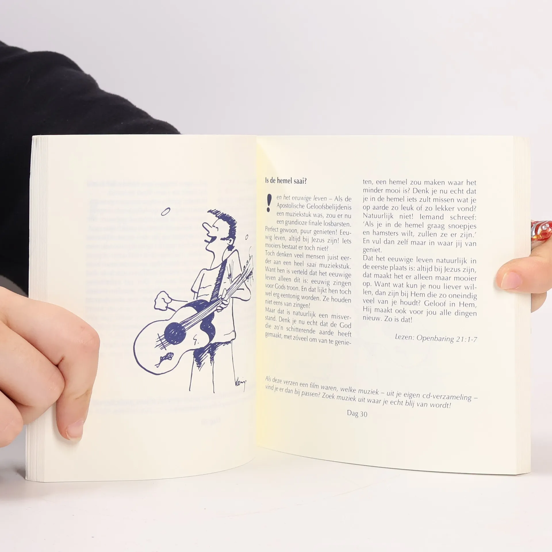 Samenvatting van het geloof in negentig korte stukjes. Voorzien van een bijbelgedeelte en een vraag of opdracht. Met schetsmatige blauw/zwarte tekeningen. Vanaf ca. 12 jaar.