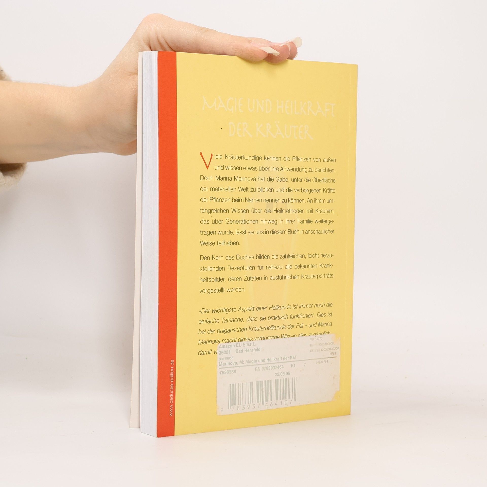 Viele Kräuterkundige kennen die Pflanzen von außen und wissen etwas über ihre Anwendung zu berichten. Doch Marina Marinova hat die Gabe, unter die Oberfläche der materiellen Welt zu blicken und die verborgenen Kräfte der Pflanzen beim Namen nennen zu können. An ihrem umfangreichen Wissen über die Heilmethoden mit Kräutern, das über Generationen hinweg in ihrer Familie weitergetragen wurde, lässt sie uns in diesem Buch in anschaulicher Weise teilhaben. Den Kern des Buches bilden die zahlreichen, leicht herzustellenden Rezepturen für nahezu alle bekannten Krankheitsbilder, deren Zutaten in ausführlichen Kräuterporträts vorgestellt werden