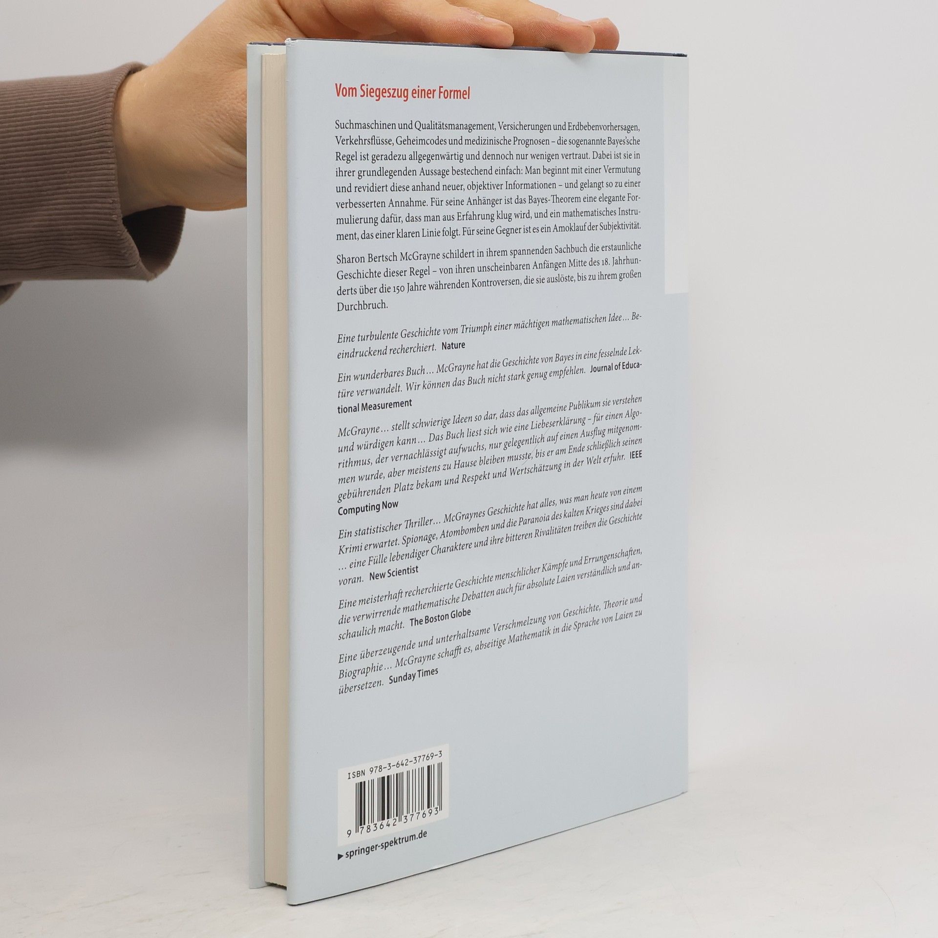 Suchmaschinen und Qualitätsmanagement, Versicherungen und Erdbebenvorhersagen, Verkehrsflüsse, Geheimcodes und medizinische Prognosen – die sogenannte Bayes’sche Regel ist geradezu allgegenwärtig und dennoch nur wenigen vertraut.