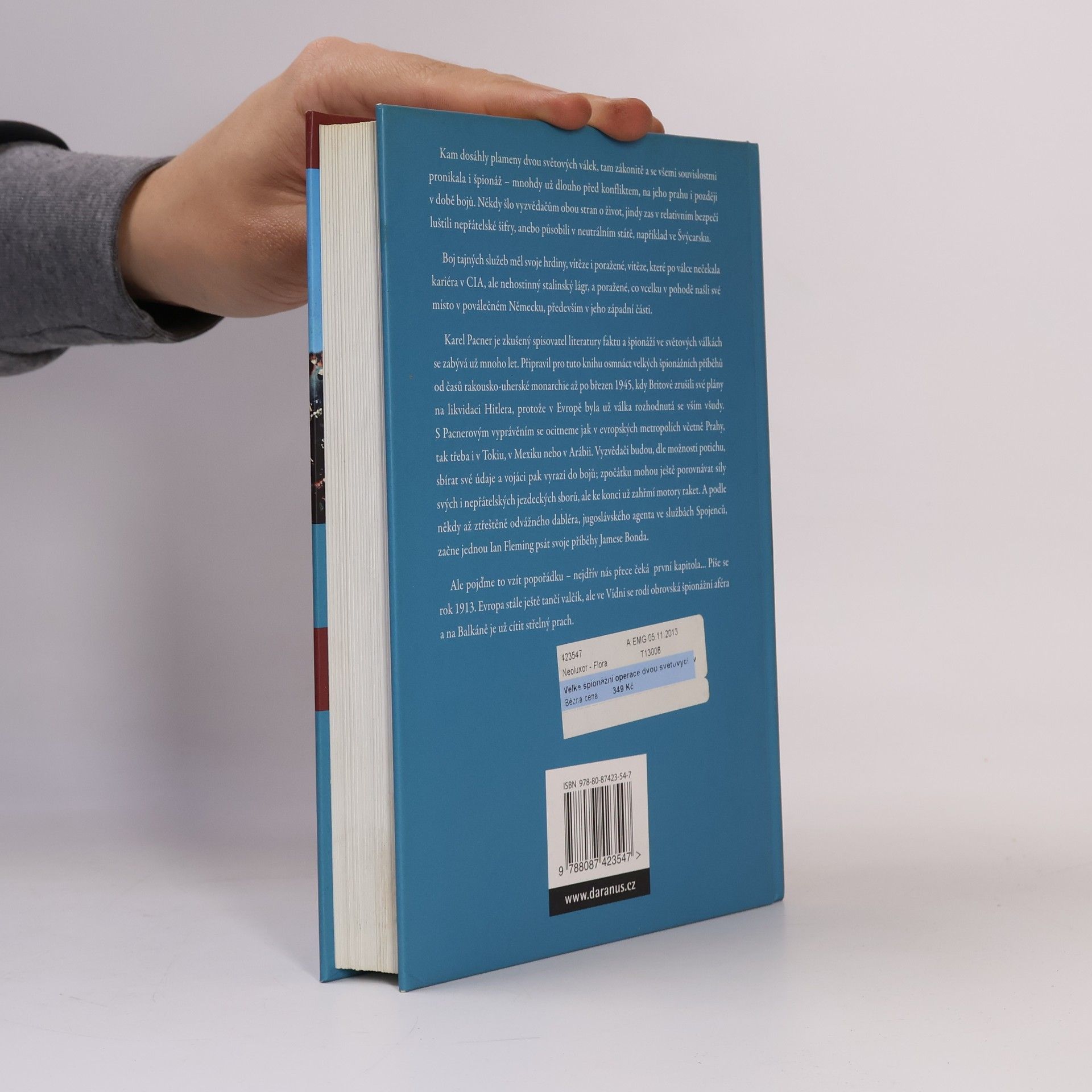 Plameny světových válek přinášely špionáž, která zasahovala do dění dlouho před konflikty a během nich. Vyzvědači často riskovali životy, luštili šifry nebo operovali v neutrálních státech jako Švýcarsko. Tajné služby měly své hrdiny a poražené; někteří skončili v nehostinných lágrech, jiní se v pohodě usadili v poválečném Německu. Karel Pacner, zkušený autor literatury faktu, se v této knize věnuje osmnácti špionážním příběhům od rakousko-uherské monarchie až po březen 1945, kdy Britové zrušili plány na likvidaci Hitlera. Pacnerovo vyprávění nás zavede do evropských metropolí, Prahy, Tokia, Mexika či Arábie, kde vyzvědači tiše sbírají informace a vojáci se připravují na boje. Na začátku srovnávají síly jezdeckých sborů, ale ke konci už se ozývají motory raket. Zajímavou postavou je jugoslávský agent, jehož odvážné činy inspirovaly Iana Fleminga k psaní příběhů o Jamesi Bondovi. Kniha začíná v roce 1913, kdy Evropa tančí valčík, ale ve Vídni se rodí velká špionážní aféra a na Balkáně je cítit střelný prach. Padesát dobových fotografií a dokumentů dodává textu autentický ráz.