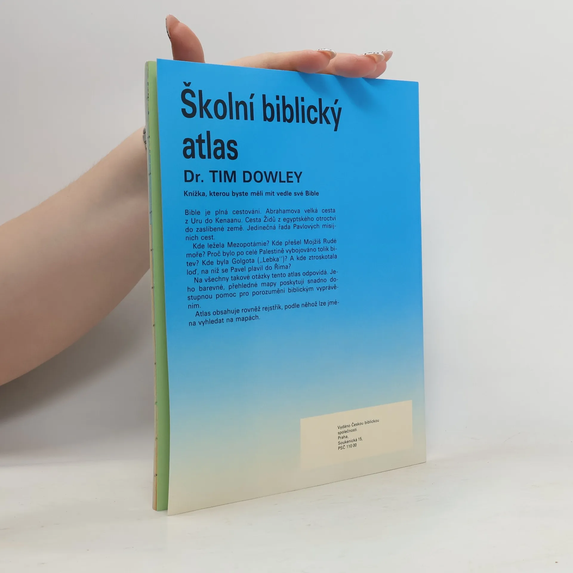 Bible je plná cestování. Abrahamova velká cesta z Uru do Kenaanu. Cesta Židů z egyptského otroctví do zaslíbené země. Jedinečná řada Pavlových misijních cest. Kde ležela Mezopotámie? Kde přešel Mojžíš Rudé moře? Proč bylo po celé Palestině vybojováno tolik bitev? Kde byla Golgota? A kde ztroskotala loď, na níž se Pavel plavil do Říma? Na všechny tyto otázky atlas odpovídá. Jeho barevné, přehledné mapy poskytují snadno dostupnou pomoc pro porozumění biblickým vyprávěním.