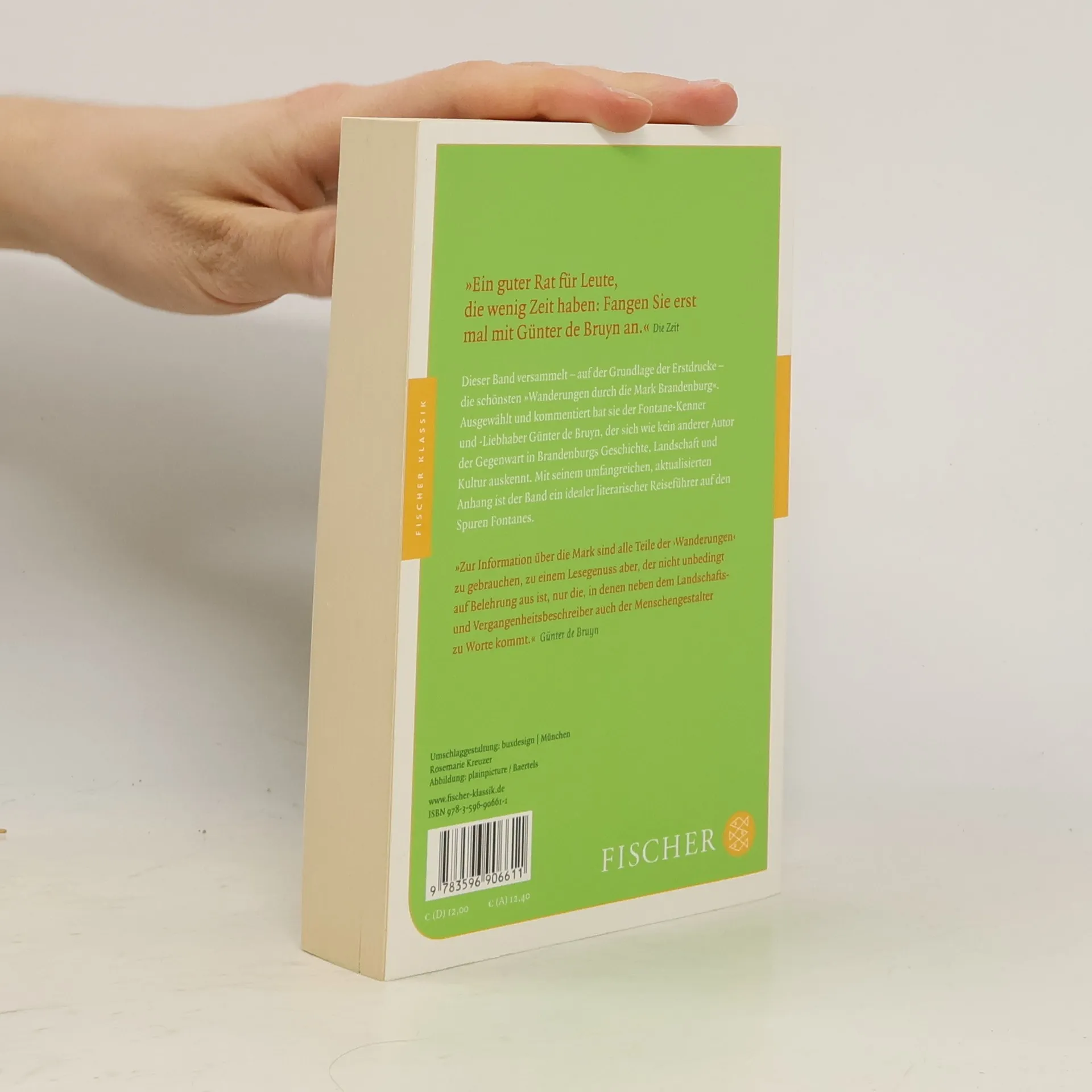 Günter de Bruyns hochgelobte Auswahl der »Wanderungen durch die Mark Brandenburg« in einer überarbeiteten Neuauflage: auf der Grundlage der Erstdrucke und ausführlich kommentiert. Wer sich im Kulturraum der Mark Brandenburg bewegt, kommt an Theodor Fontane ebensowenig vorbei wie an Günter de Bruyn. Kein anderer Autor der Gegenwart kennt sich besser aus in Preußens vielgestaltiger Kulturgeschichte, keiner liebt die Landschaft der Mark Brandenburg so wie Günter de Bruyn. Für diese Zusammenstellung hat er die fünf Bände von Fontanes »Wanderungen« nach den schönsten Stellen durchsucht. Die ausgewählten Texte folgen dabei den Erstdrucken, die Fontanes Reiseeindrücke oft farbiger und unmittelbarer festgehalten haben als die überarbeiteten späteren Fassungen. Die Auswahl erschien erstmals im Rahmen der gemeinsam mit Gerhard Wolf herausgegebenen Reihe »Märkischer Dichtergarten«. Für die Neuausgabe hat Günter de Bruyn den Band noch einmal durchgesehen und den umfangreichen Anhang aktualisiert.