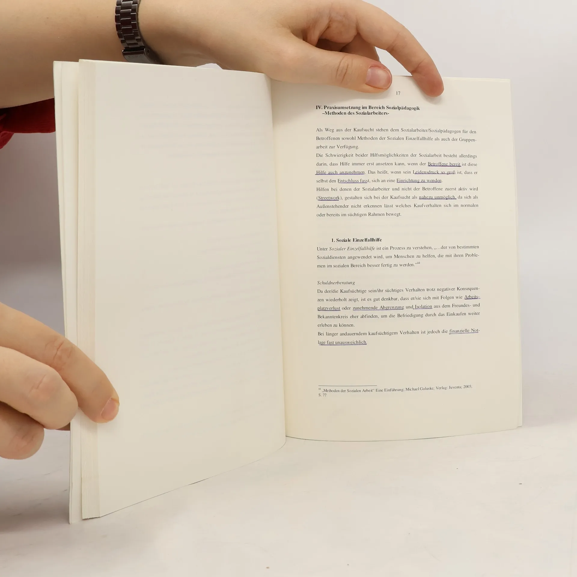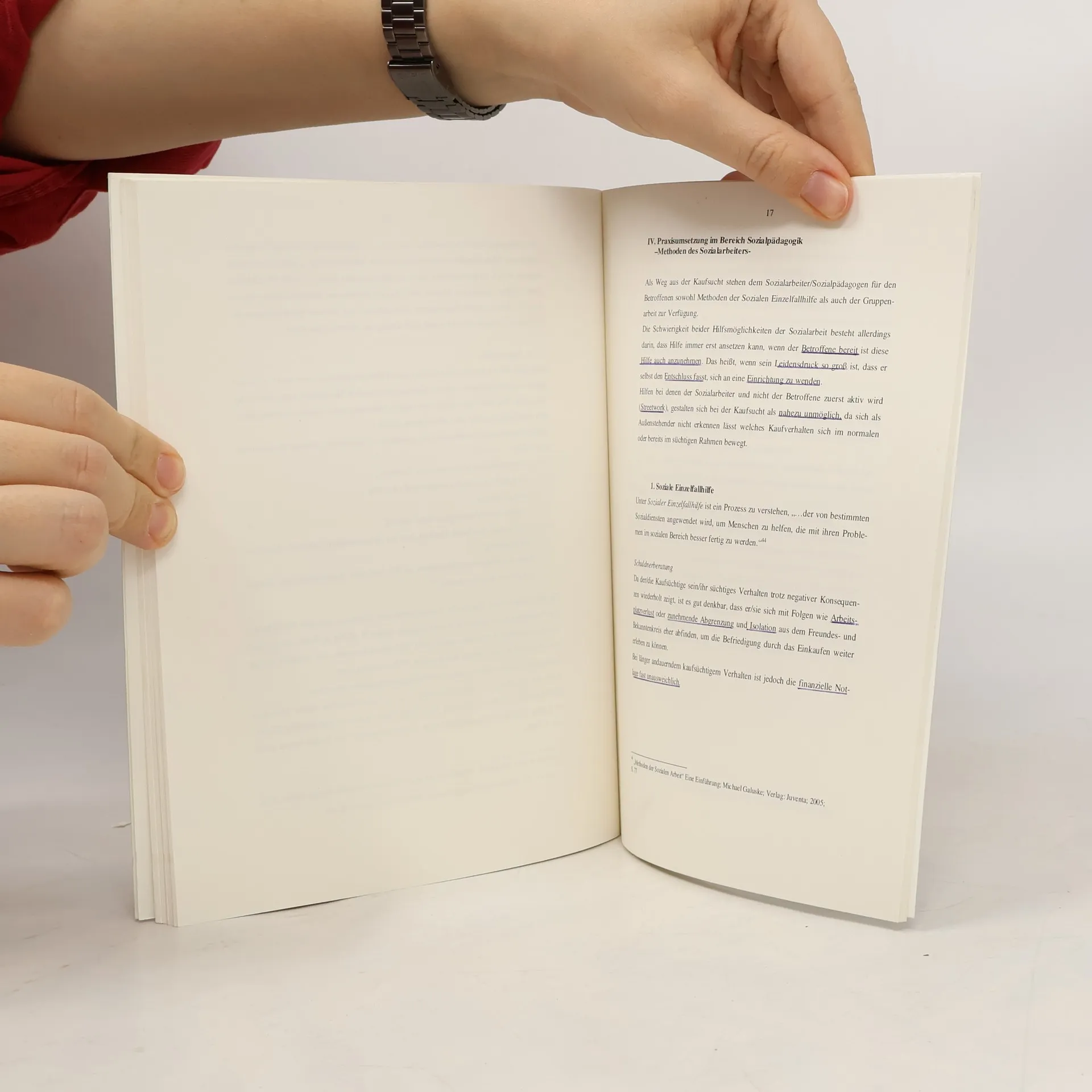 Studienarbeit aus dem Jahr 2006 im Fachbereich Soziale Arbeit / Sozialarbeit, 2,0, Katholische Universität Eichstätt-Ingolstadt, Abhängigkeit-Depression-Angst, Deutsch, Die Kaufsucht ist unter den psychischen Störungen ein noch sehr neues und relativ unerforschtes Phänomen. Deutlich wird dies bereits an seiner Begrifflichkeit.Die Kaufsucht erscheint als klassifizierte Sucht in keinem der beiden bedeutendsten Nachschlagewerke für psychische Störungen - weder in der aktuellen Ausgabe von ICD (International Statistical Classification of Diseases and Related Health Problems) noch in DSM (Diagnostisches und Statistisches Manual psychischer Störungen).Der Begriff „Kaufsucht“ ist kein wissenschaftlich fundierter Begriff. Neben ihm bestehen Bezeichnungen, wie krankhafter Kauftrieb oder Oniomanie1; Kaufzwang, Kaufwut, krankhafte Kauflust, krankhafte Kaufsucht, triebhafte Kaufsucht, anfallsweises Einkaufen oder sogar Kaufrausch2.Mit letzterem verbinden wohl die wenigsten von uns eine ernst zu nehmende Krankheit, wie auch der Artikel aus „Der Spiegel“ vom 28. Juni 2006 mit seinem Slogan „Die Deutschen sind im Kaufrausch“3 erkennen lässt.Was hier lapidar klingen mag, wird im Folgenden näher erklärt.Nachfolgende Seiten handeln von der „Krankheit“ „Kaufsucht“ an sich, von deren Verbreitung in unserer Gesellschaft und ihren Komorbiditäten, sowie von den präventiven Methoden, die die Sozialarbeit bereits im Kindes- und Jugendalter einsetzen kann, um diesem Problem zu begegnen.