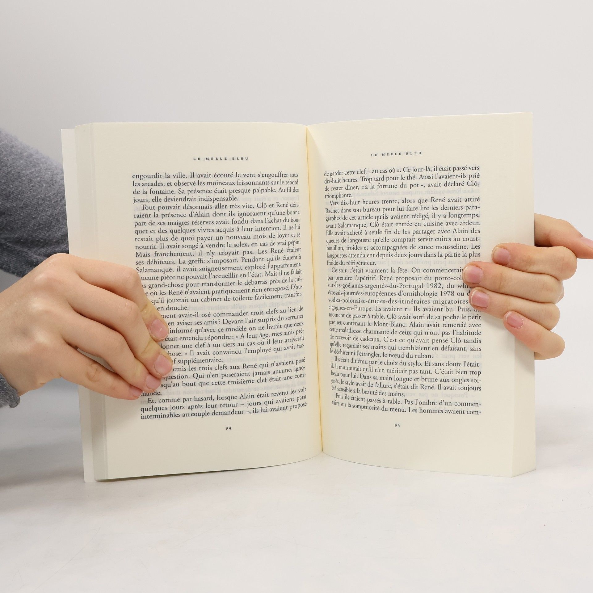 Le merle bleu est un drôle d'oiseau. Solitaire, migrateur discret du pourtour méditerranéen, vivant à l'écart dans des paysages de pierres et de ruines, il possède néanmoins un chant capable d'émouvoir et de ravir les cœurs les plus secs. Ceux de M. René et de Mme Clô, par exemple, un couple d'ornithologues âgés, repliés dans leur paisible et monotone retraite d'Uzès et qui ont fait de l'étude de cet oiseau la dernière passion de leur existence. Survient le merle bleu, en l'occurrence un jeune homme venu d'ailleurs, un migrateur lui aussi. Il dit s'appeler Alain, être écrivain. Il s'installe dans leur nid et dans leur vie. Il les change, il change à leur contact. Et c'est ainsi que le professeur désabusé, l'impérieuse bourgeoise de province et le séduisant inconnu découvrent à tour de rôle le bonheur d'être ce qu'ils n'avaient jamais été.