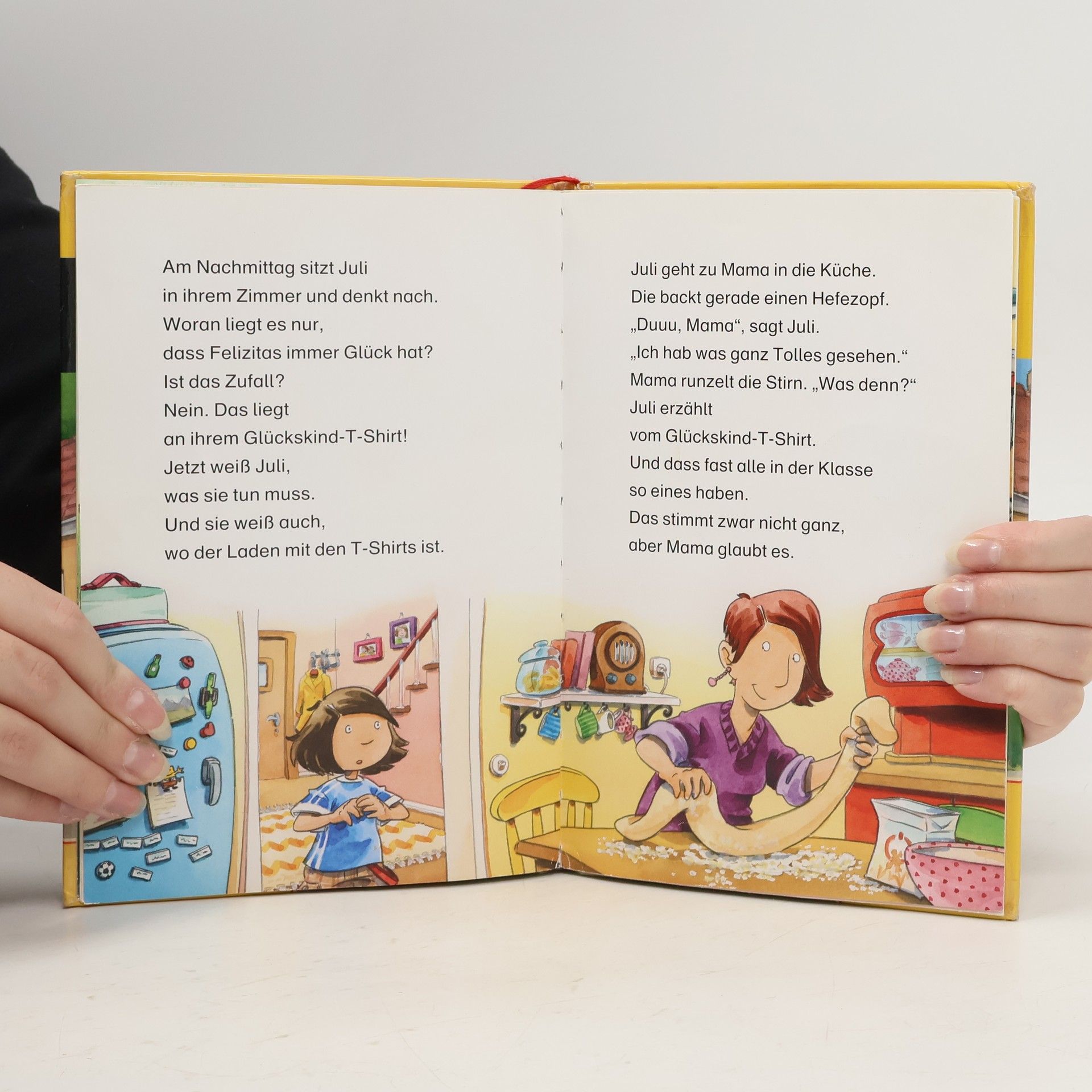 Juli ist neidisch auf Felizitas und ihr rosa Glücks-T-Shirt. Damit gelingt einfach alles! Ob Juli auch ein Glückskind wird, wenn Mama ihr so ein T-Shirt kauft? Ab 7.