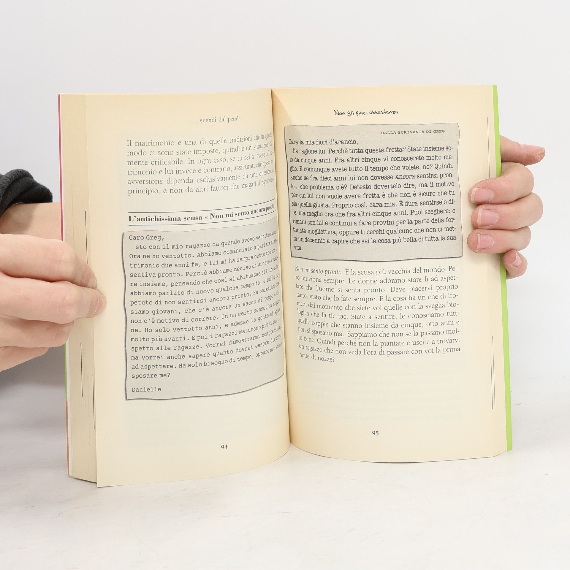 Un manuale per smascherare le scuse che gli uomini raccontano e le donne si bevono. In questa guida, due sceneggiatori della serie televisiva Sex and the City insegnano come riconoscere le giustificazioni vere da quelle false: un botta e risposta fra donne in crisi e l'esperto, consigli, rivelazioni ("Gli uomini sanno come funziona un telefono"), divieti ("Non stare altri dieci minuti con lui se noti uno dei seguenti comportamenti..."), aneddoti personali, esercizi pratici, per non perdere altro tempo e smettere di farsi illusioni.