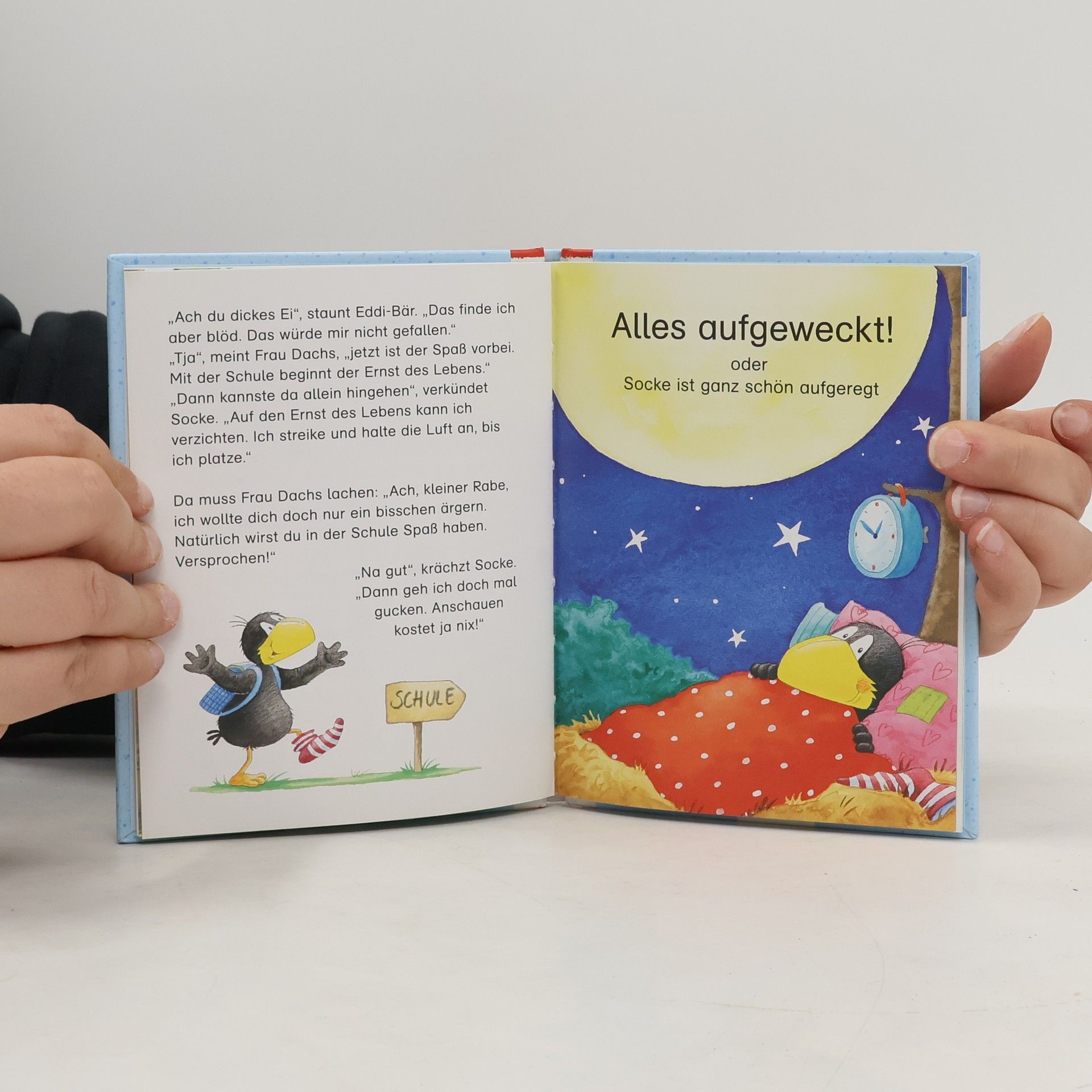 Hurra, der kleine Rabe Socke kommt in die Schule: Zuerst übt er mit seinen Freunden, was alles in einen Schulranzen gehört (oder auch nicht), dann verschläft er beinahe seinen ersten Schultag (aber nicht ganz) und bei der Einschulungsfeier wird er ratzfatz zur Hauptperson ( und bringt allen viel Spaß). Drei rabenstarke Einschulungsgeschichten mit dem kleinen Raben Socke für alle Schulanfänger – im perfekten Geschenk- und Schultüten-Format!