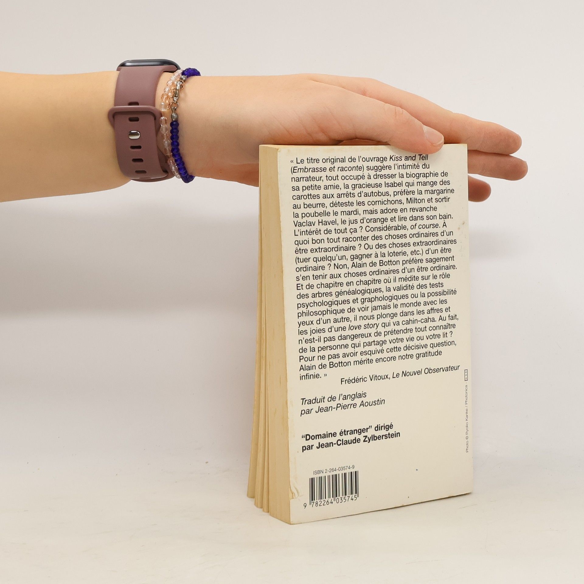" Le titre original de l'ouvrage Kiss and Tell (Embrasse et raconte) suggère l'intimité du narrateur, tout occupé à dresser la biographie de sa petite amie, la gracieuse Isabel qui mange des carottes aux arrêts d'autobus, préfère la margarine au beurre, déteste les cornichons, Milton et sortir la poubelle le mardi, mais adore en revanche Vaclav Havel, le jus d'orange et lire dans son bain. L'intérêt de tout ça ? Considérable, of course. À quoi bon tout raconter des choses ordinaires d'un être extraordinaire ? Ou des choses extraordinaires (tuer quelqu'un, gagner à la loterie, etc.) d'un être ordinaire ? Non, Alain de Botton préfère sagement s'en tenir aux choses ordinaires d'un être ordinaire. Et de chapitre en chapitre où il médite sur le rôle des arbres généalogiques, la validité des tests psychologiques et graphologiques ou la possibilité philosophique de voir jamais le monde avec les yeux d'un autre, il nous plonge dans les affres et les joies d'une love story qui va cahin-caha. Au fait, n'est-il pas dangereux de prétendre tout connaître de la personne qui partage votre vie ou votre lit ? Pour ne pas avoir esquivé cette décisive question, Alain de Botton mérite encore notre gratitude infinie. " Frédéric Vitoux, Le Nouvel Observateur