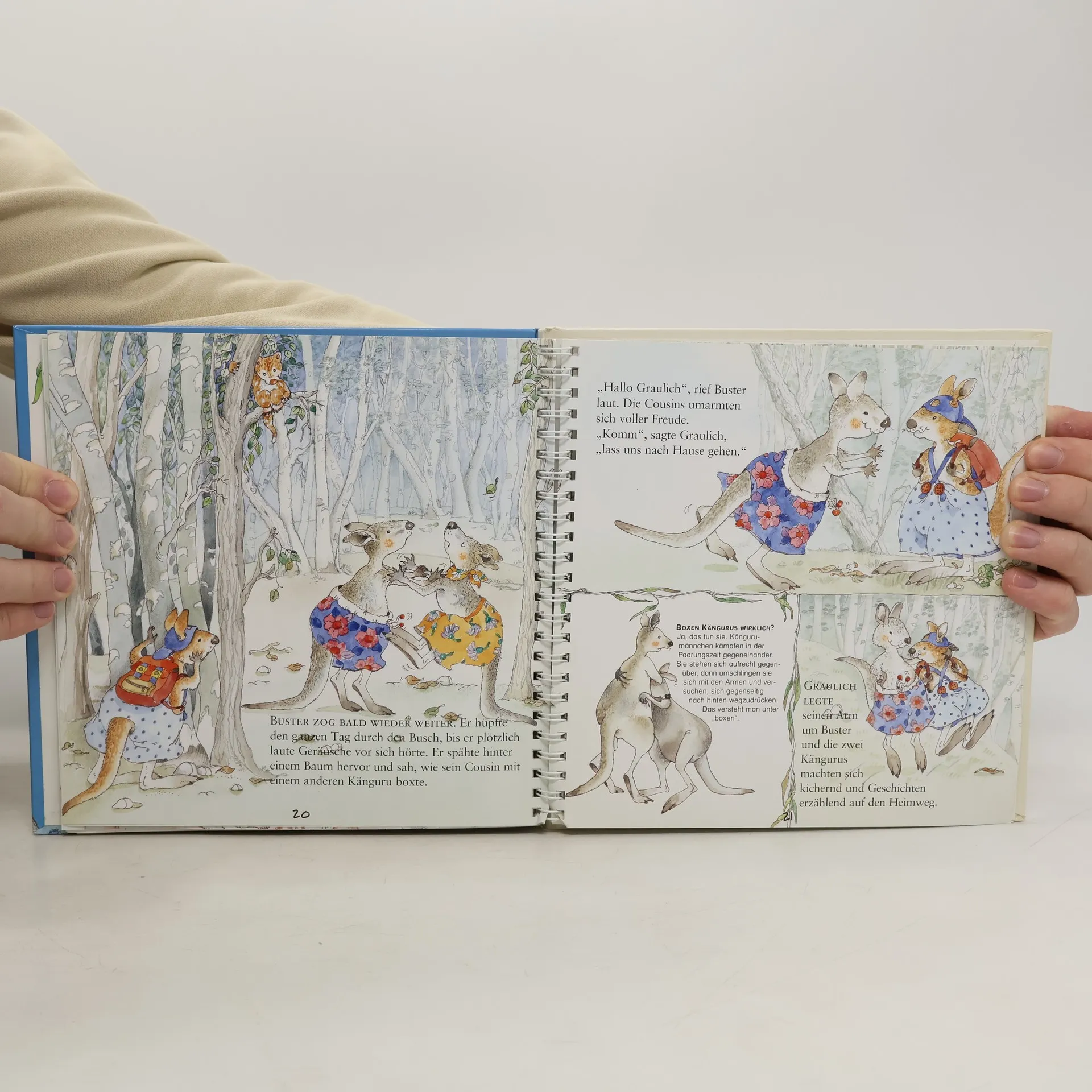 Eine besondere Lernbuchreihe zum Vorlesen und für das erste Lesealter, liebevoll gestaltet von Daniela de Luca. Jeder Band stellt ein Tierkind von einer der acht großen Landmassen vor. Spannende Erlebnisse aus dem Leben der tierischen Helden werden mit kindgerechten Sachtexten zur Lebenswelt des jeweiligen Tieres lehrreich kombiniert. - Australien. Buster freut sich gar nicht über seine neue kleine Schwester, da für ihn nun kein Platz mehr in Mutters Beutel ist. Er reißt aus, erforscht das Land und erkennt schließlich: Am schönsten ist es bei der Familie! Über Familienzuwachs und das Größerwerden