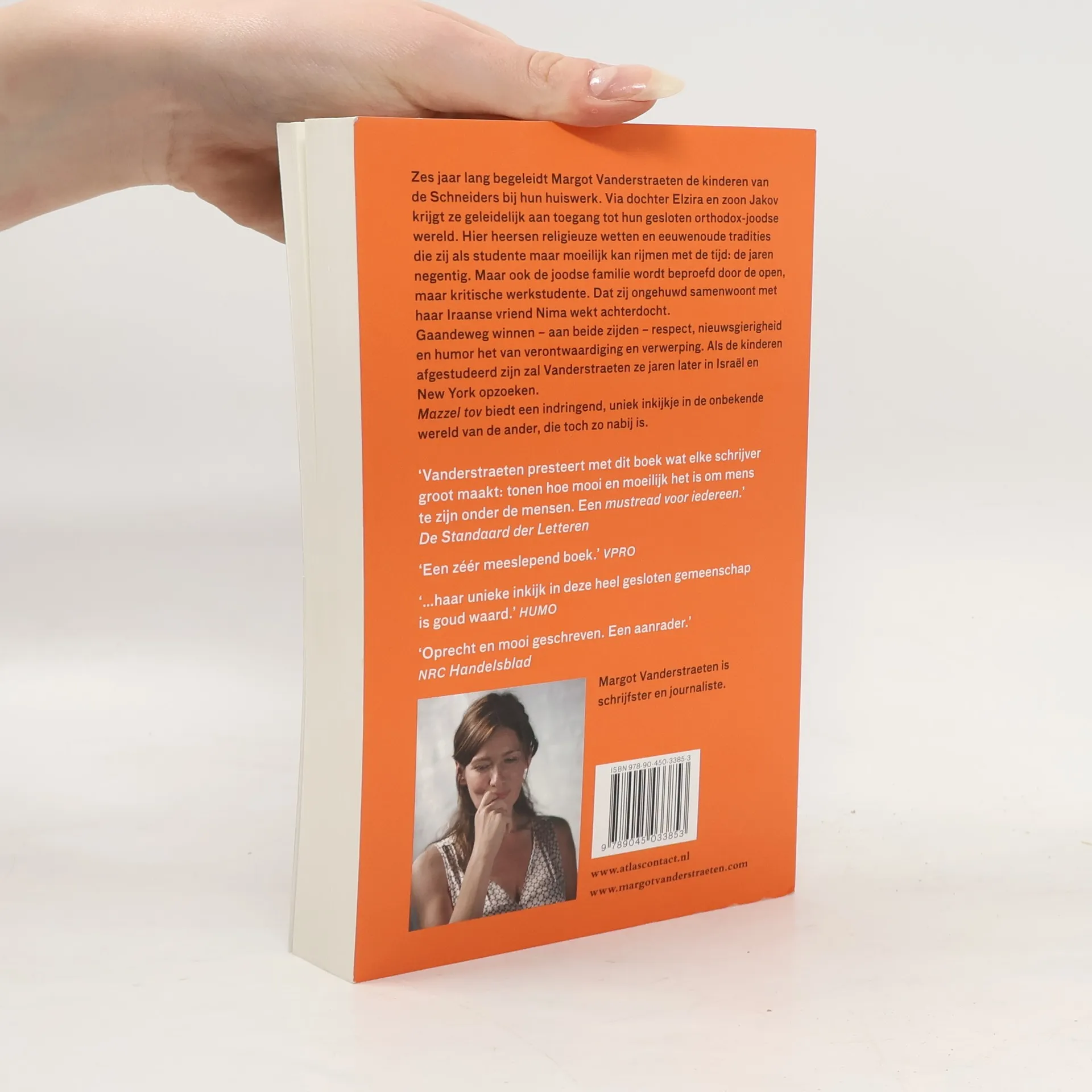 Zes jaar lang begeleidt Margot Vanderstraeten de kinderen van de Schneiders bij hun huiswerk. Via dochter Elzira en zoon Jakov krijgt ze geleidelijk aan toegang tot de gesloten joods-orthodoxe wereld van dit Antwerpse gezin. Hier heersen religieuze wetten en eeuwenoude tradities die de Vlaamse studente maar moeilijk kan rijmen met de tijd: de jaren negentig. De joodse familie raakt bekneld tussen traditie en het moderne leven. Dat Margot bijvoorbeeld ongehuwd samenwoont met haar Iraanse vriend wekt achterdocht. Gaandeweg winnen – aan beide zijden – respect, nieuwsgierigheid en humor het van verontwaardiging en verwerping. Als de kinderen afgestudeerd zijn zal Vanderstraeten ze jaren later in Israël en New York bezoeken. Mazzel tov is een meeslepend en confronterend verhaal over opgroeiende kinderen in een modern-orthodox joods milieu, gezien door de ogen van een niet-joodse jonge vrouw. Mazzel tov biedt een uniek inkijkje in de onbekende wereld van de ander, die vlakbij woont. (source : Atlas Contact)