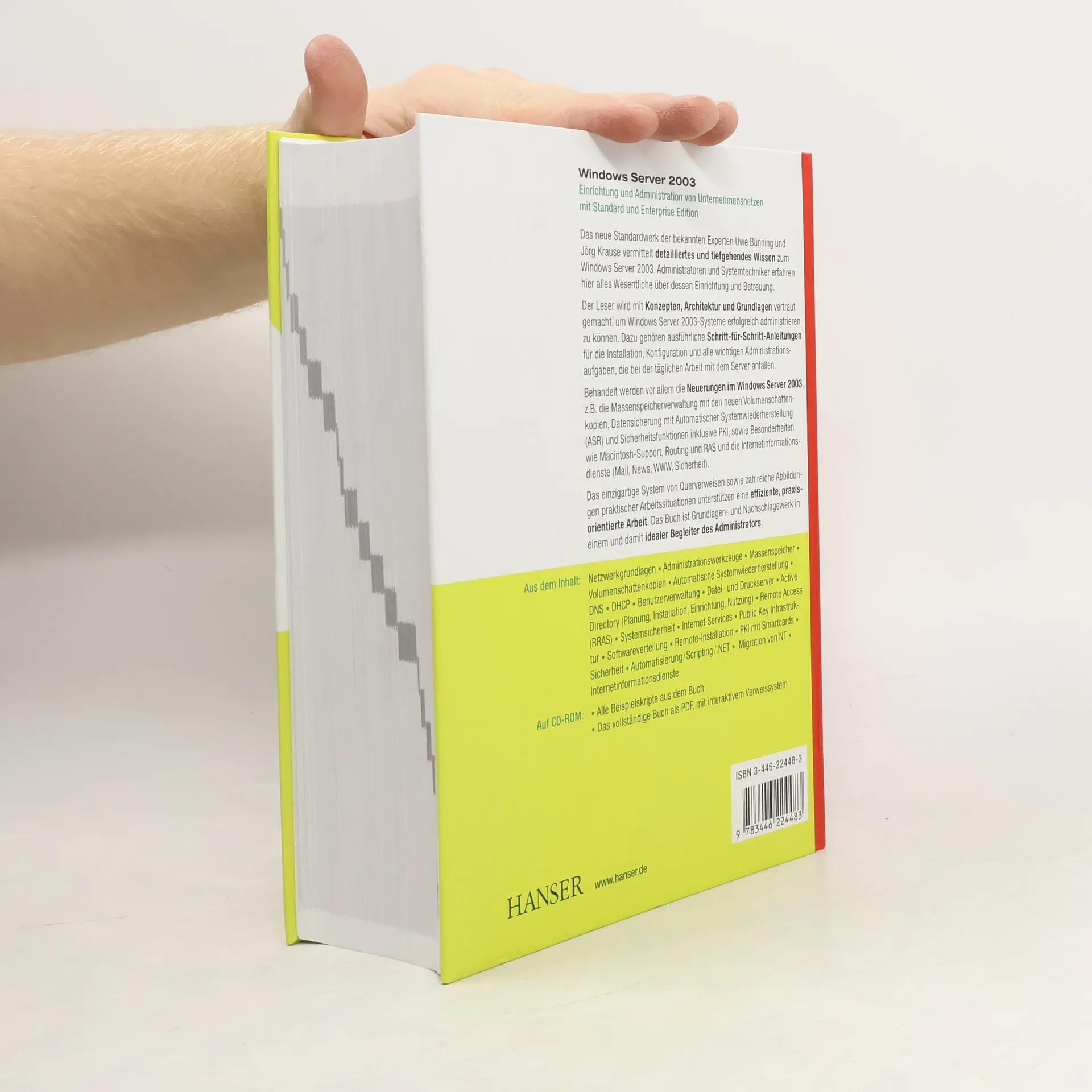 Das neue Standardwerk von Uwe Bünning und Jörg Krause bietet umfassendes Wissen zu Windows Server 2003 für Administratoren und Systemtechniker. Es vermittelt essentielle Informationen zur Einrichtung und Betreuung des Systems und führt den Leser in Konzepte, Architektur und Grundlagen ein. Ausführliche Schritt-für-Schritt-Anleitungen decken Installation, Konfiguration und alle wichtigen Administrationsaufgaben ab. Besondere Neuerungen des Windows Server 2003 werden behandelt, darunter Massenspeicherverwaltung mit Volumenschattenkopien, Datensicherung mit Automatischer Systemwiederherstellung (ASR) und Sicherheitsfunktionen wie PKI. Auch spezielle Themen wie Macintosh-Support, Routing und RAS sowie Internetinformationsdienste (Mail, News, WWW, Sicherheit) finden Berücksichtigung. Ein einzigartiges System von Querverweisen und zahlreiche Abbildungen unterstützen eine praxisorientierte Arbeit. Das Buch fungiert sowohl als Grundlagen- als auch Nachschlagewerk und ist somit ein idealer Begleiter für Administratoren. Die Inhalte umfassen Netzwerkgrundlagen, Administrationswerkzeuge, Benutzerverwaltung, Active Directory, Systemsicherheit, Softwareverteilung und Migration von NT. Auf der CD-ROM sind alle Beispielskripte und das vollständige Buch als interaktive PDF verfügbar.
