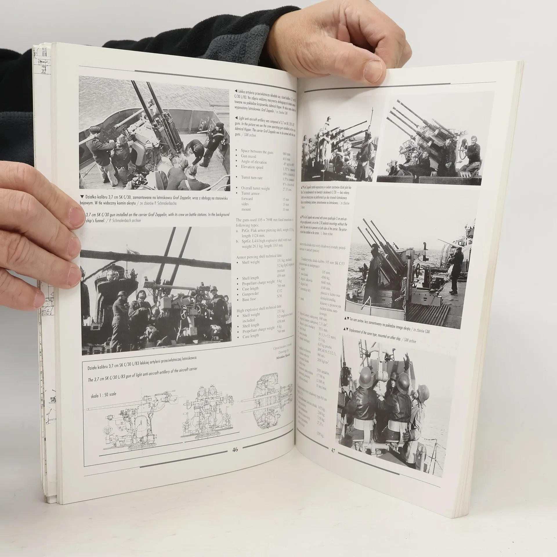 This book details the history of the German Aircraft Carrier Graf Zeppelin, with many diagrams, photos, and illustrations.This is a bilingual item. With the complete text and captions in both English and Polish.