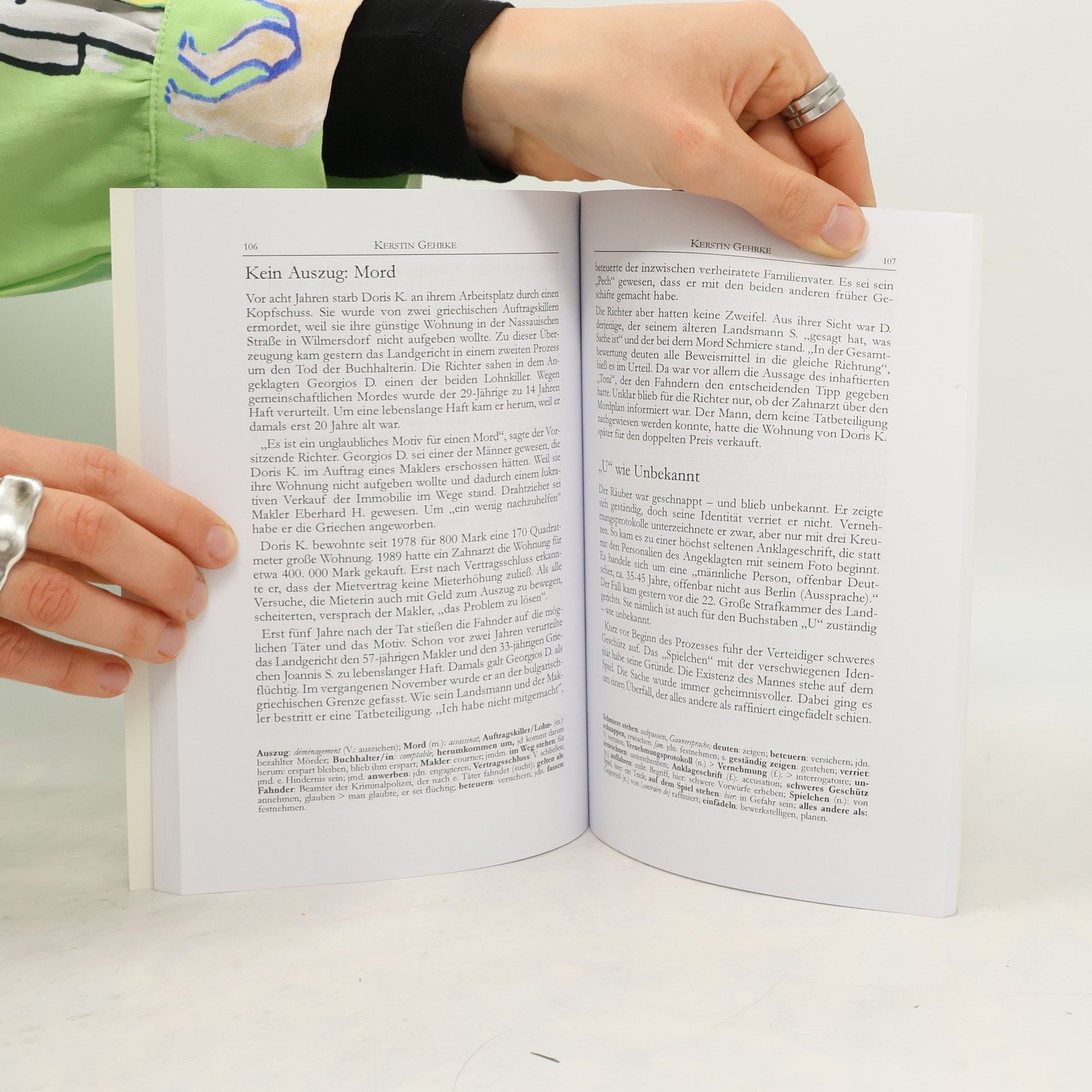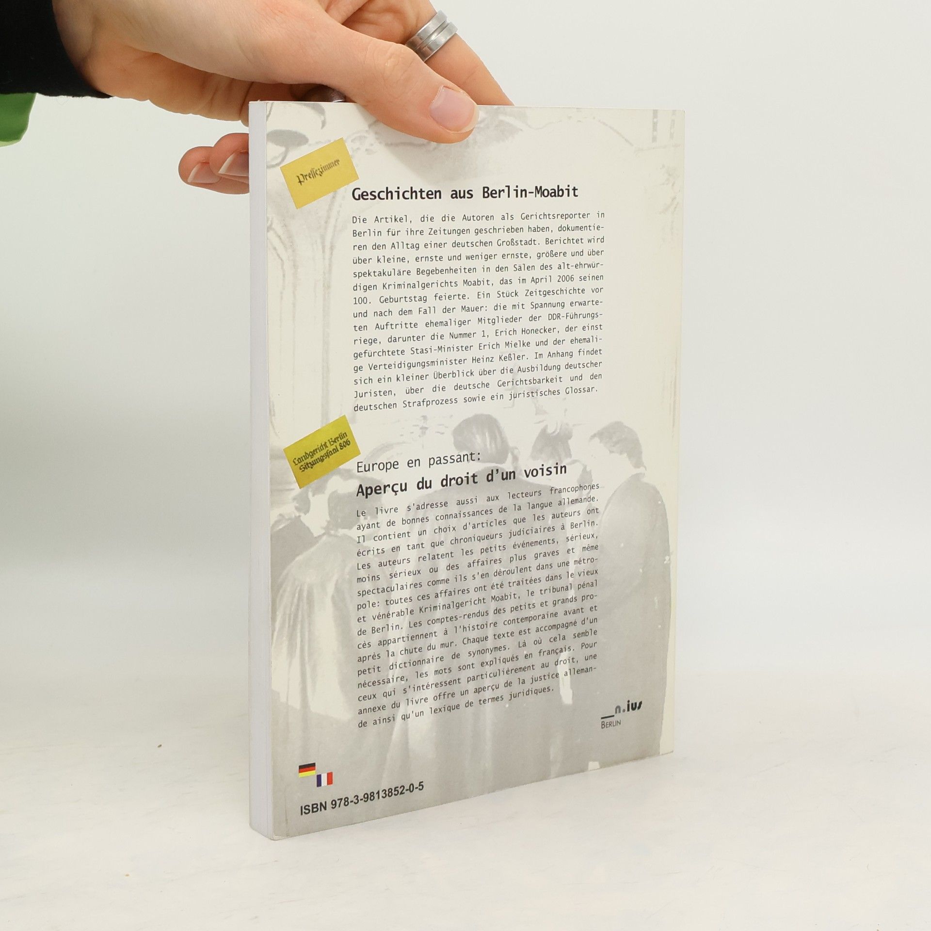 Die Artikel der Autoren, die als Gerichtsreporter in Berlin tätig sind, dokumentieren den Alltag einer deutschen Großstadt und berichten über eine Vielzahl von Ereignissen im Kriminalgericht Moabit, das 2006 seinen hundertsten Geburtstag feierte. Die Berichte umfassen sowohl kleine als auch spektakuläre Fälle und beleuchten die Zeitgeschichte vor und nach dem Mauerfall, einschließlich der Auftritte ehemaliger DDR-Funktionäre wie Erich Honecker und Erich Mielke. Das Buch bietet zudem einen Überblick über die Juristenausbildung, die Gerichtsbarkeit und den Strafprozess, ergänzt durch zahlreiche Erläuterungen und ein juristisches Glossar. Für Nicht-Muttersprachler sind Lesehilfen wie Synonyme und französische Übersetzungen enthalten, wo es notwendig ist. Es richtet sich auch an frankophone Leser mit guten Deutschkenntnissen und bietet eine Auswahl an Artikeln, die die Autoren als Chronisten des Berliner Justizgeschehens verfasst haben. Die Berichte über die kleinen und großen Prozesse sind Teil der zeitgenössischen Geschichte und werden durch ein kleines Wörterbuch von Synonymen ergänzt. Für Interessierte am deutschen Rechtssystem gibt es eine Anhang mit einem Überblick über die Justiz und ein Lexikon juristischer Begriffe.