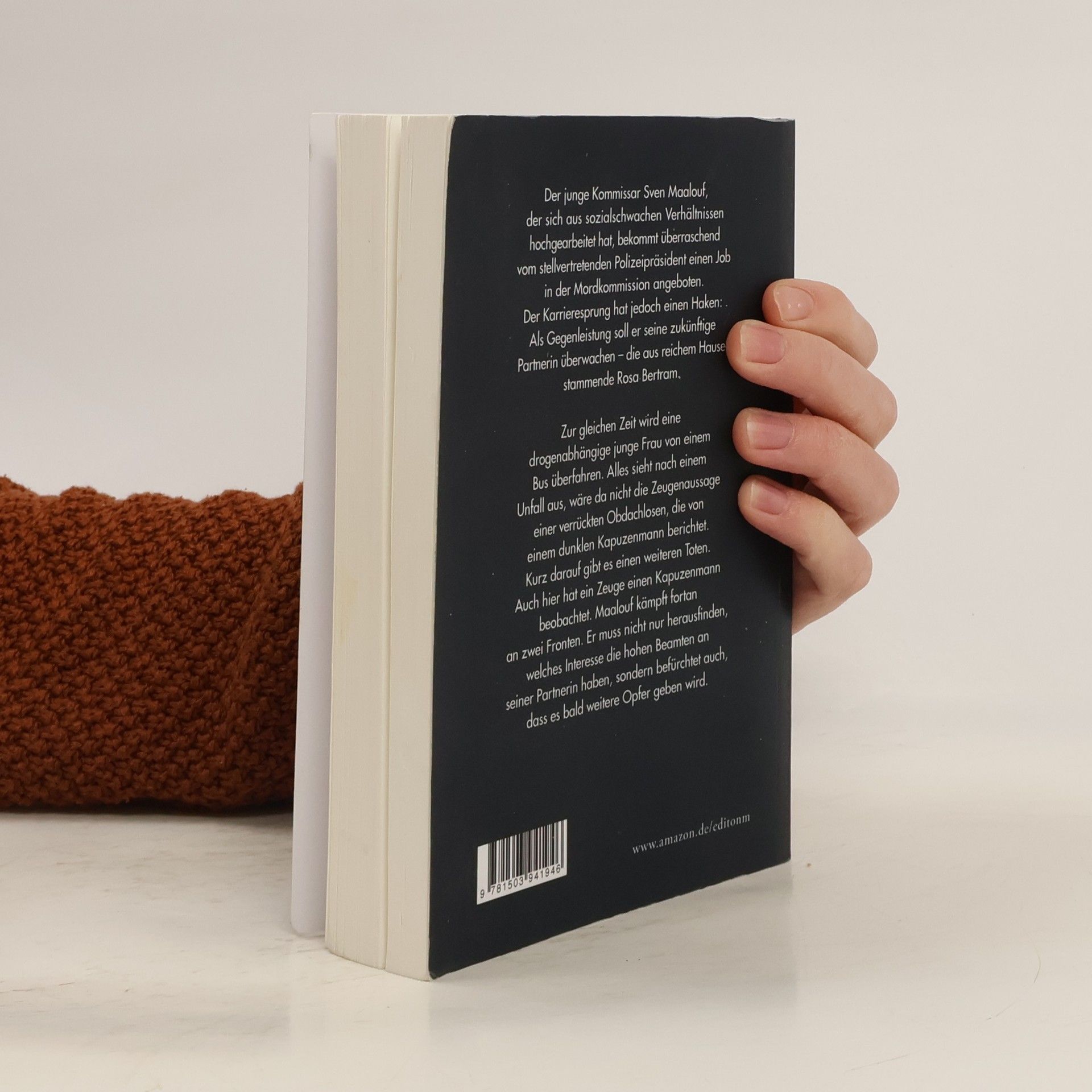 Der junge Kommissar Sven Maalouf, der sich aus sozialschwachen Verhältnissen hochgearbeitet hat, bekommt überraschend vom stellvertretenden Polizeipräsident einen Job in der Mordkommission angeboten. Der Karrieresprung hat jedoch einen Haken: Als Gegenleistung soll er seine zukünftige Partnerin überwachen – die aus reichem Hause stammende Rosa Bertram. Zur gleichen Zeit wird eine drogenabhängige junge Frau von einem Bus überfahren. Alles sieht nach einem Unfall aus, wäre da nicht die Zeugenaussage einer verrückten Obdachlosen, die von einem dunklen Kapuzenmann berichtet. Kurz darauf gibt es einen weiteren Toten. Auch hier hat ein Zeuge einen Kapuzenmann beobachtet. Maalouf kämpft fortan an zwei Fronten. Er muss nicht nur herausfinden, welches Interesse die hohen Beamten an seiner Partnerin haben, sondern befürchtet auch, dass es bald weitere Opfer geben wird.