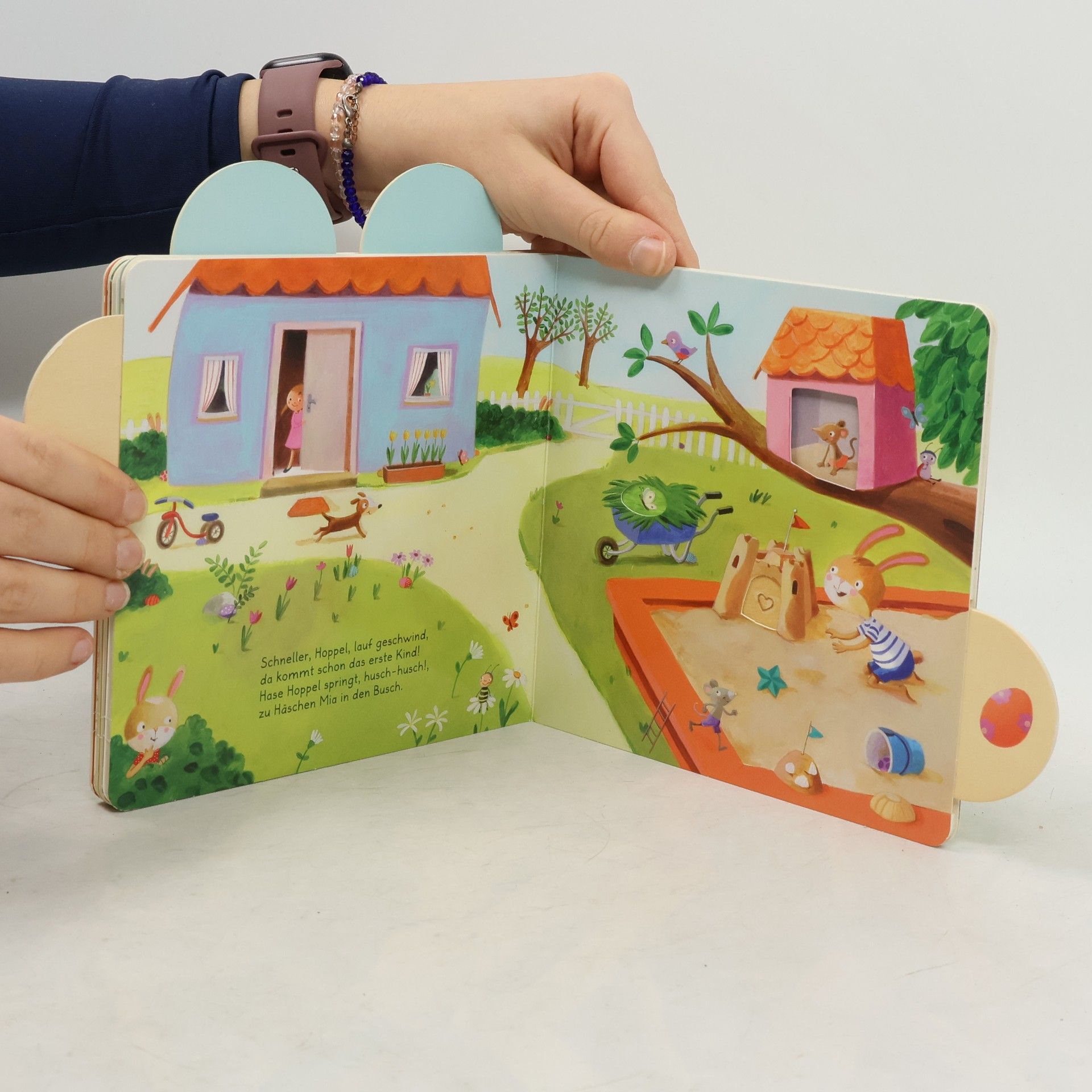 Endlich ist wieder Ostern - und Osterhase Hoppel kann die Ostereier verstecken. Die Osterei-Laschen lassen sich ganz einfach herausziehen - und dabei verwandeln sich die Bilder. Eine tolle Überraschungen folgt der nächsten.