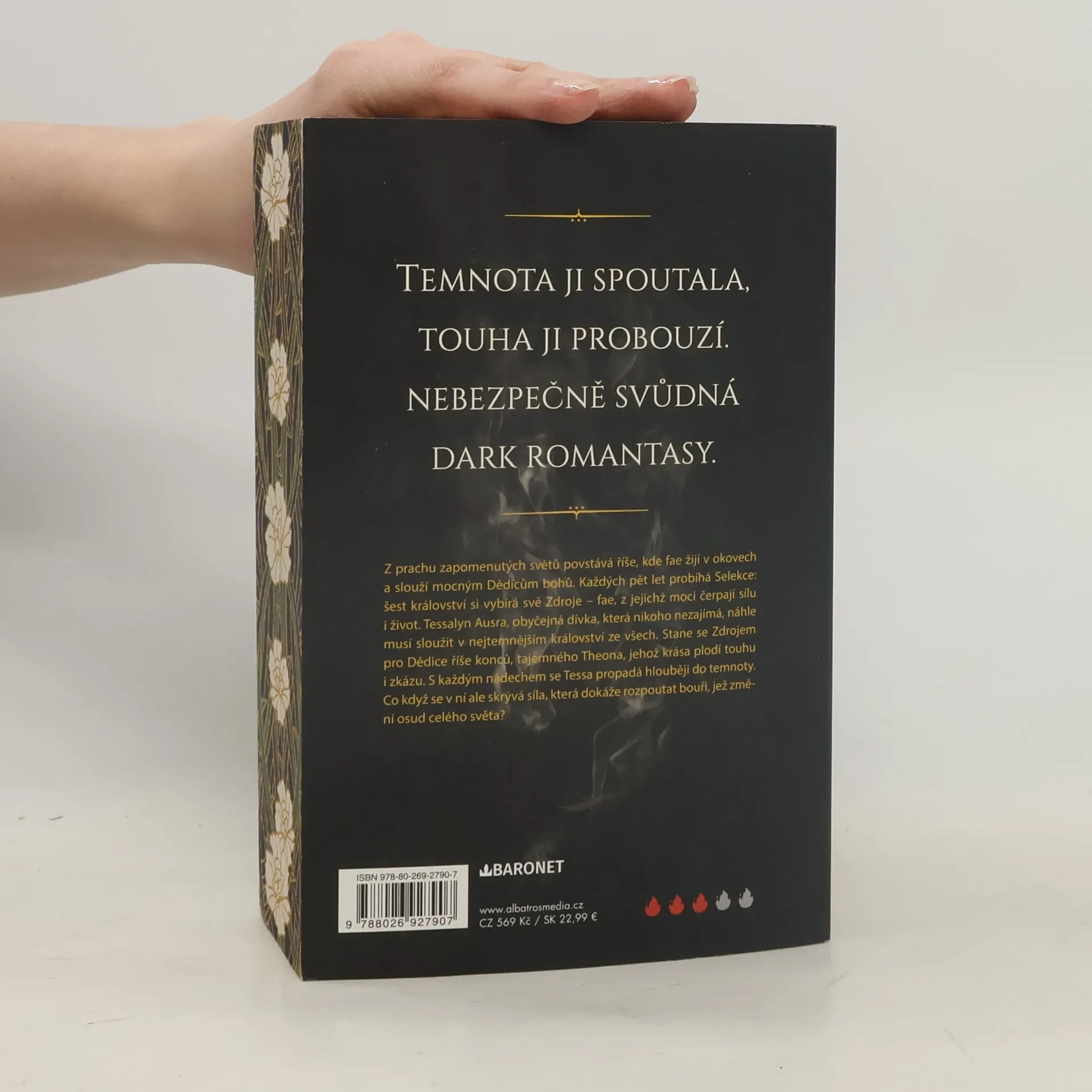 Z prachu zapomenutých světů povstává říše, kde víly žijí v okovech a slouží mocným Dědicům bohů. Každých pět let probíhá Selekce: šest království si vybírá své Zdroje, víly, z jejichž moci čerpají sílu i život. Tessalyn Ausra, dívka z kraje, na který svět dávno zapomněl, skončí ve službě v nejtemnějším království ze všech. Stává se Zdrojem pro Dědice, jehož krása plodí touhu i zkázu. S každým nádechem se Tessa propadá hlouběji do temnoty. Co když se v ní ale skrývá víc, než by ji napadlo?