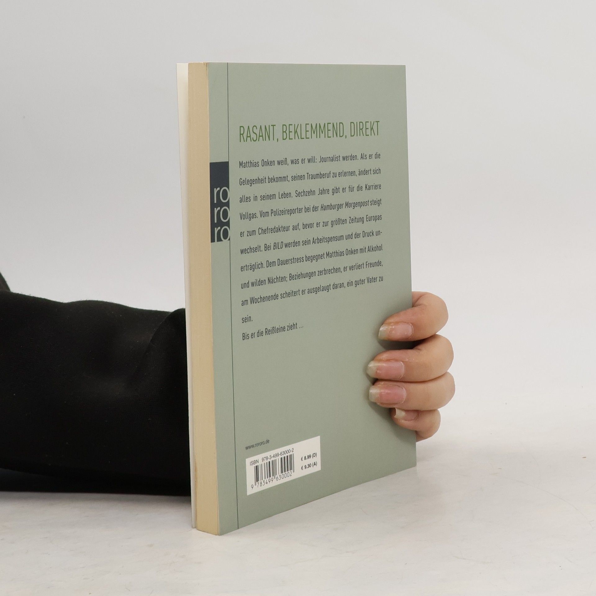 Rasant, beklemmend, direkt Matthias Onken weiß, was er will: Journalist werden. Als er die Gelegenheit bekommt, seinen Traumberuf zu erlernen, ändert sich alles in seinem Leben. Sechzehn Jahre gibt er für die Karriere Vollgas. Vom Polizeireporter bei der Hamburger Morgenpost steigt er zum Chefredakteur auf, bevor er zur größten Zeitung Europas wechselt. Bei BILD werden sein Arbeitspensum und der Druck unerträglich. Dem Dauerstress begegnet Matthias Onken mit Alkohol und wilden Nächten; Beziehungen zerbrechen, er verliert Freunde, am Wochenende scheitert er ausgelaugt daran, ein guter Vater zu sein. Bis er die Reißleine zieht …