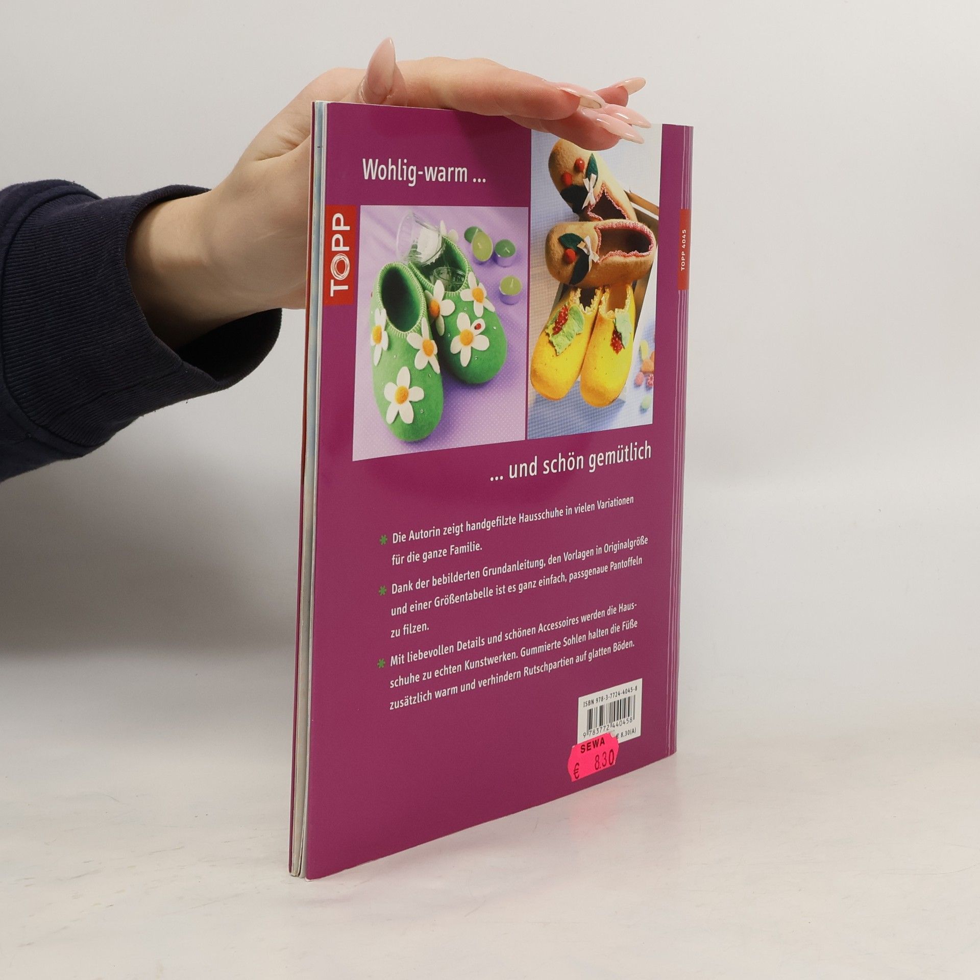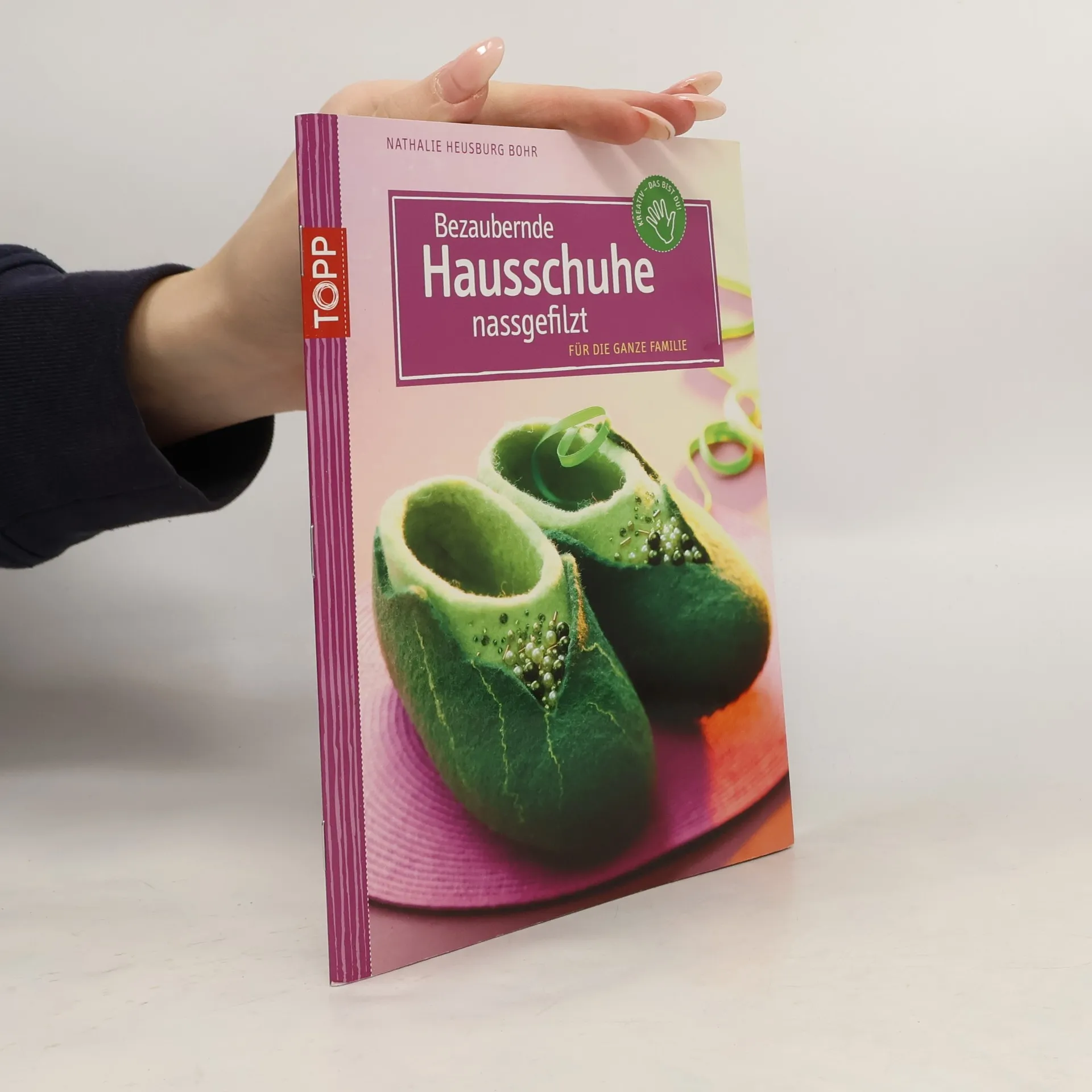 Bezaubernde Hausschuhe nassgefilzt für die ganze Familie. Elegante und gemütliche Hausschuhe in vielen Variationen – passgenau nassgefilzt für kleine und große Füße. Mit liebevollen Details und schönen Accessoires werden die Pantoffeln zu echten Kunstwerken. Gummierte Sohlen halten die Füße zusätzlich schön warm und verhindern Rutschpartien auf glatten Böden. Kreativ-Softcover, 32 Seiten, 17 x 22 cm, Umschlagklappen, perforierte Vorlagenbogen, Einsteckhüllen.