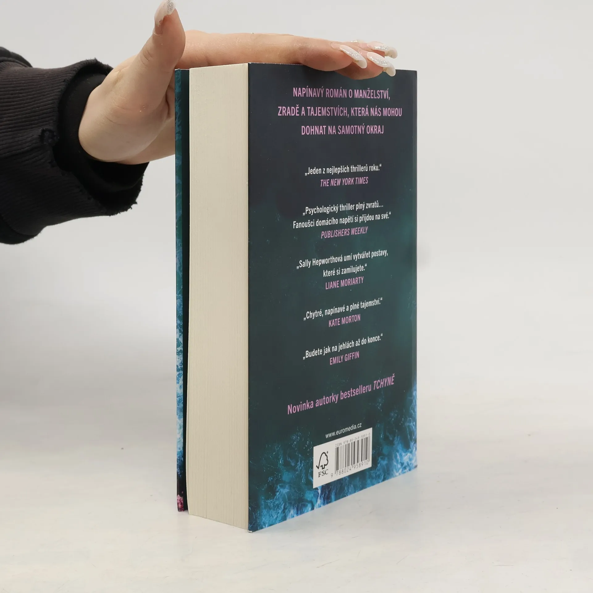 Gabe a Pippa bydlí na krásném místě s výhledem na moře, jejich vysněný domov se však pojí i s čímsi ponurým. Vysoké útesy poblíž jsou častým posledním útočištěm pro ty, kdo se rozhodli skoncovat se životem. V posledních měsících Gabe dělá, co může, aby příchozím jejich zoufalý záměr vymluvil. Jenže pak se mu to jednou nepovede. Když se Pippa dozví, že se Gabe s obětí znal, začnou se vynořovat otázky. Co se se zesnulou osobou stalo? Skočila? Někdo ji strčil? A je možné, že by Pippě Gabe, její spřízněná duše, lhal? Temná tajemství se pomalu odkrývají a na dokonalé fasádě jednoho manželství se objevují trhliny. Protože ty nejpřesvědčivější lži někdy říkáme sami sobě.